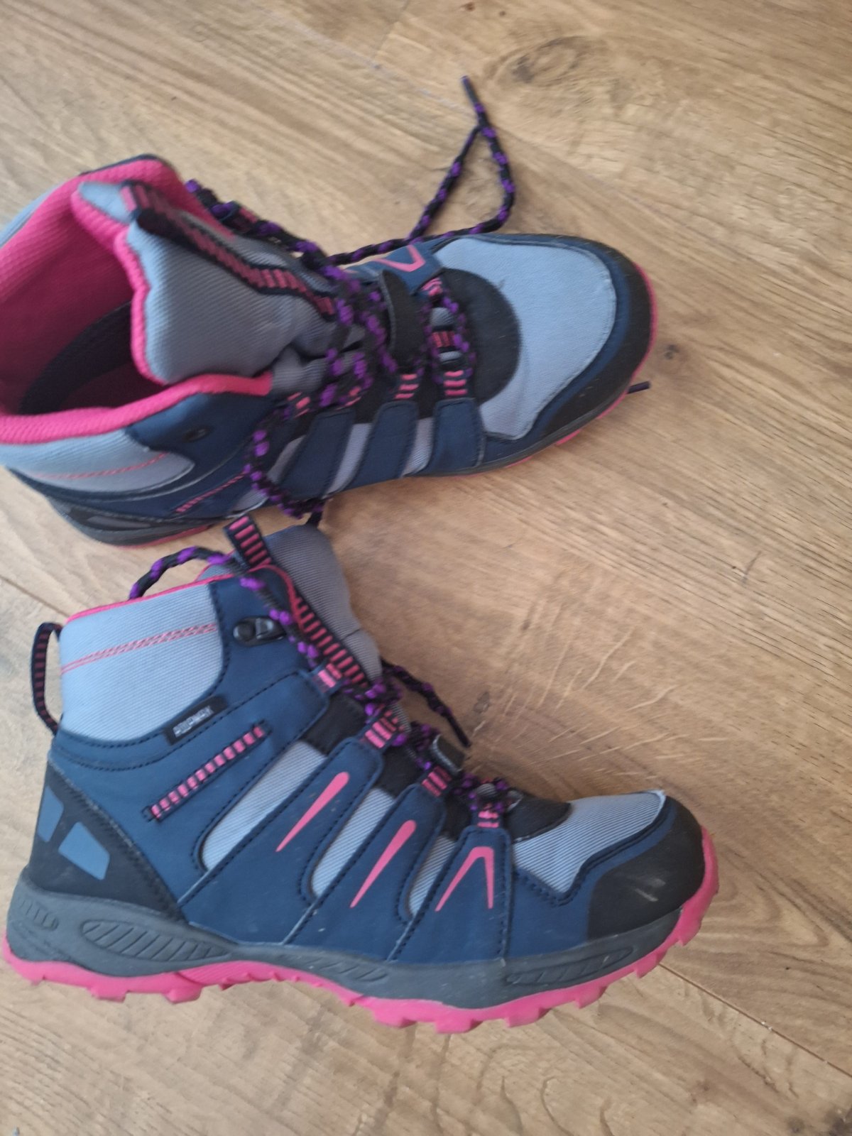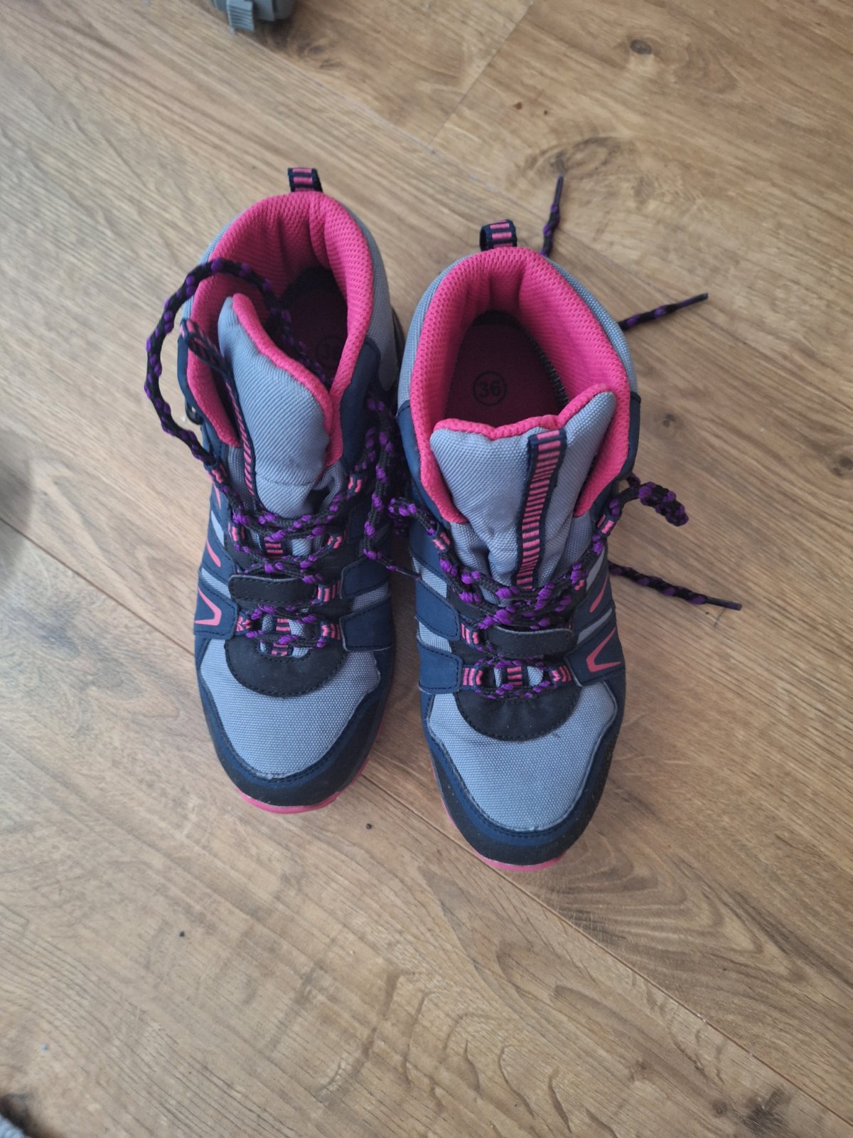 Predám skvelé turistické topánky po dcére. Značka Cmp, veľkosť detská 36 (vnútorná dĺžka vyberateľnej stielky 23cm). Vodeodpudivé, na rýchlošnurovanie ( dá sa zmeniť aj na klasické šnurovanie - šnú...
