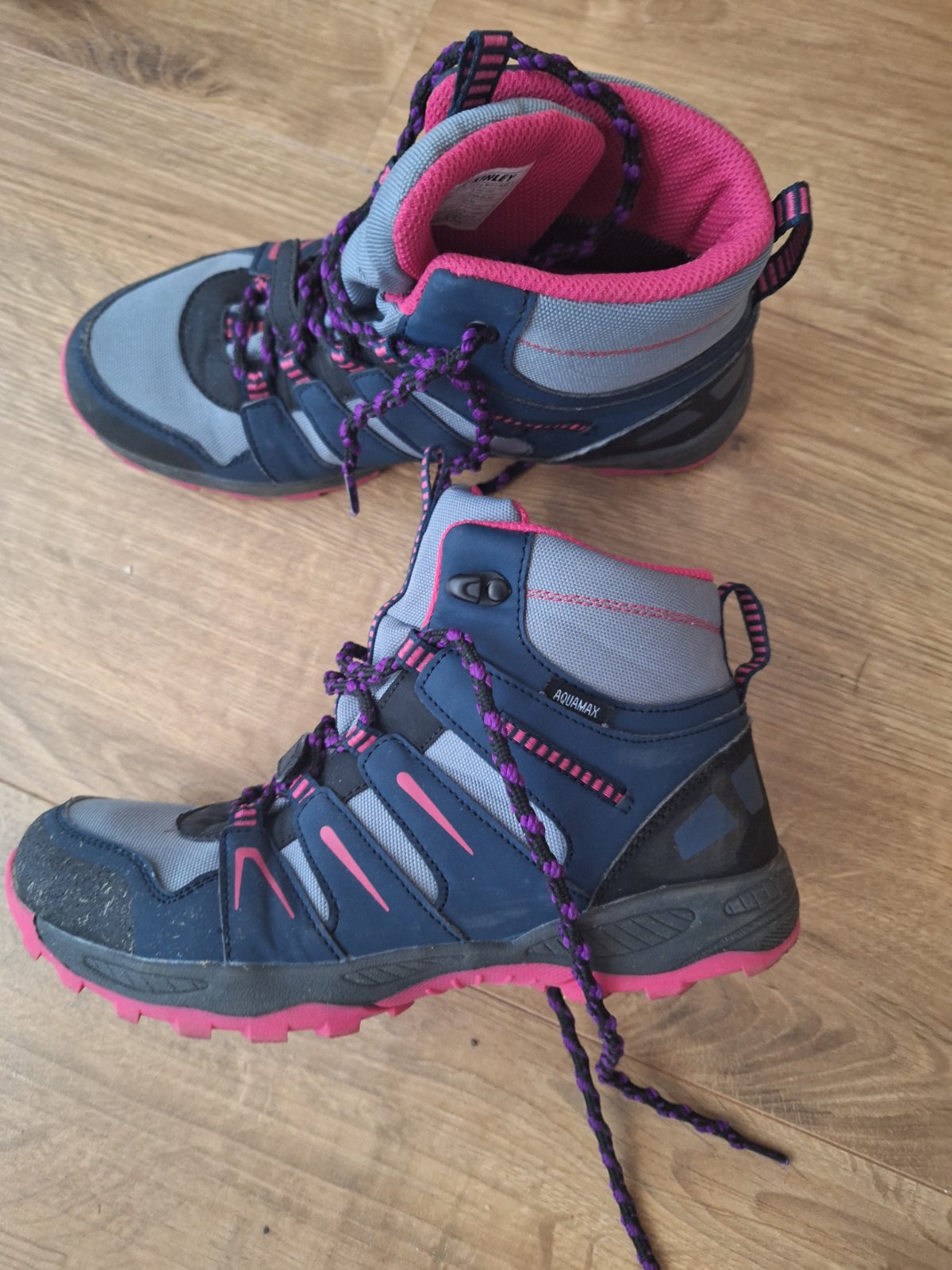 Dievčenské turistické topánky, ako nové, raz obuté na túru. VD 22cm.