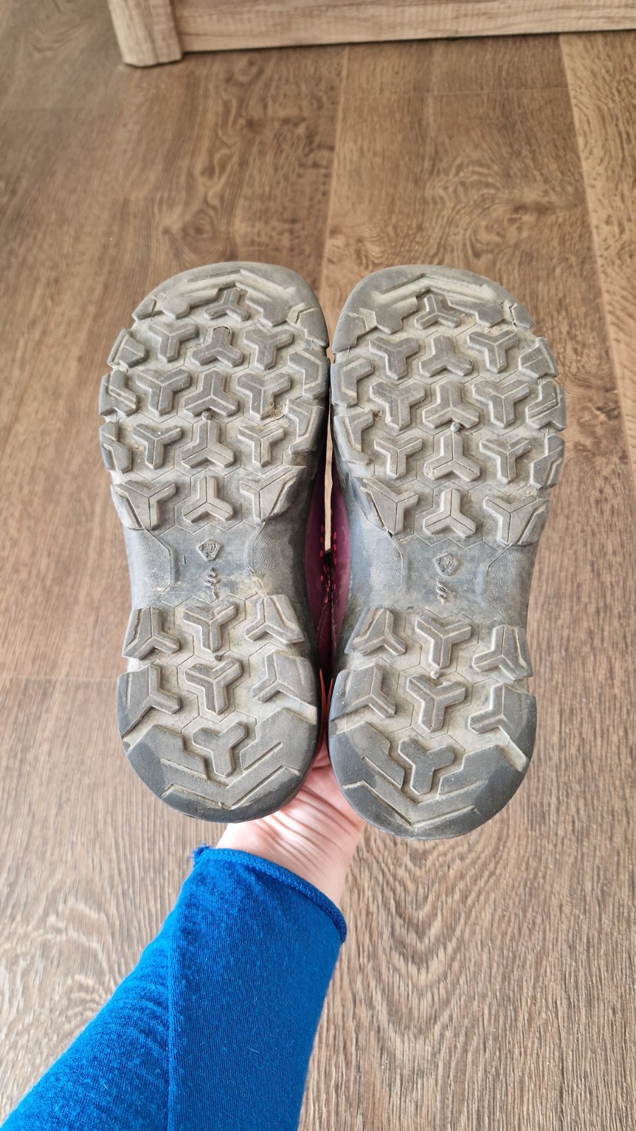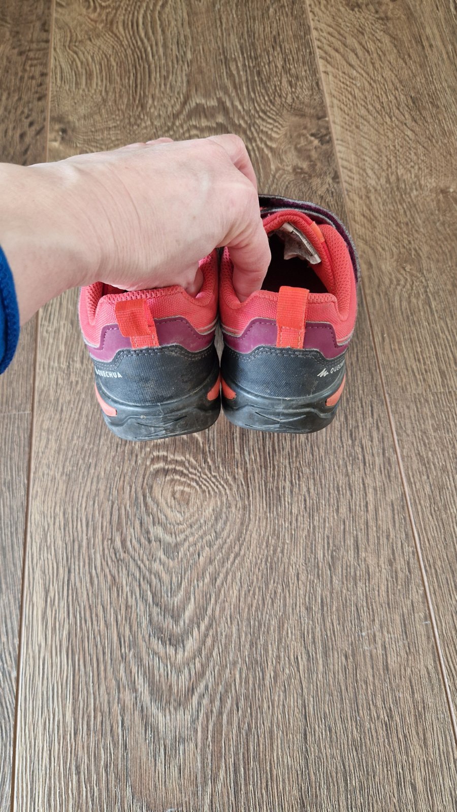 Dievčenské turistické topánky nosené minimálne j edným dieťaťom.