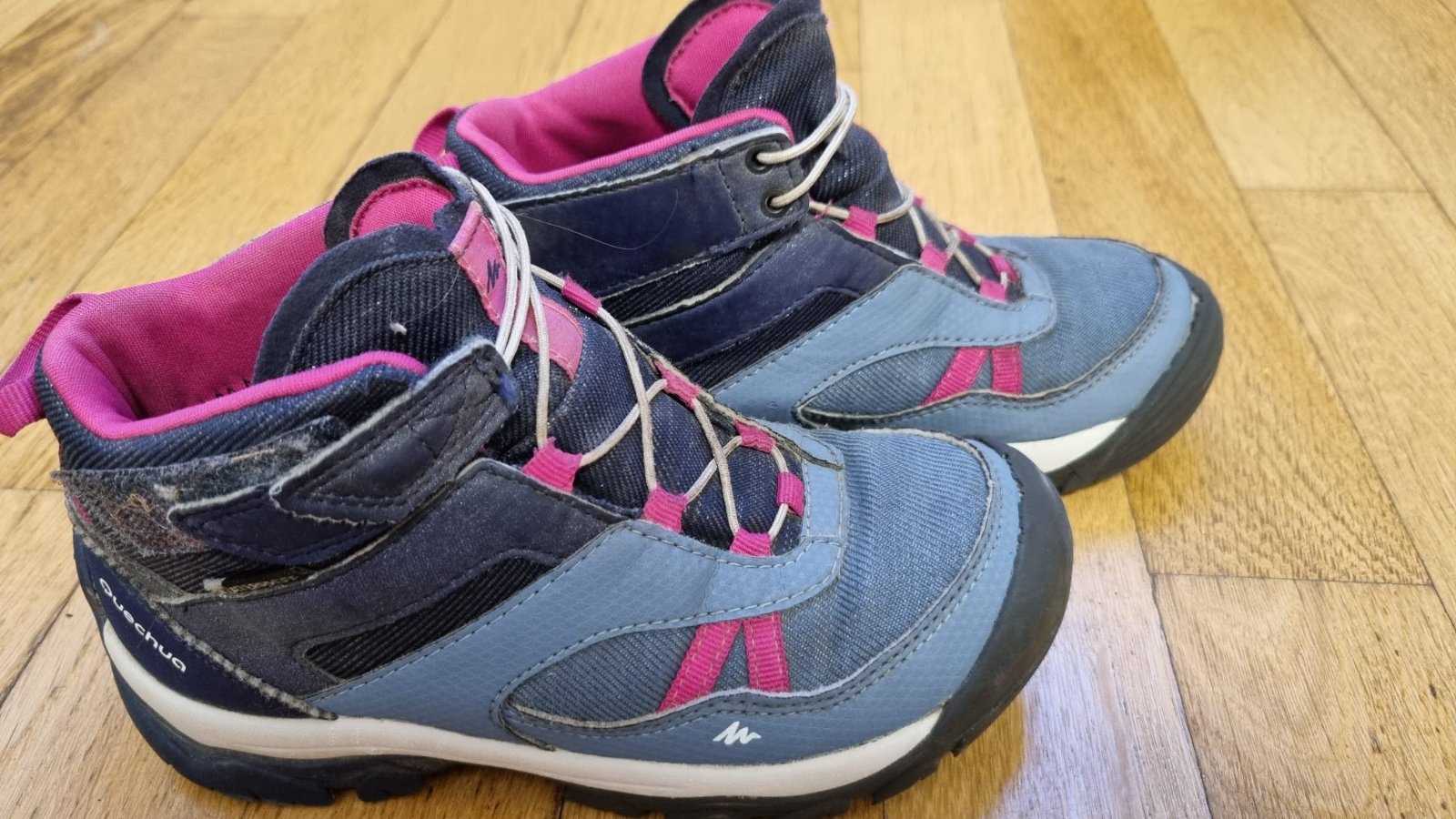 Posuvam turisticke topanky/ botasky po dcere, pohodle sa jej nosili, lahko zavazovali. Spicky buchnute, inak vyborny stav.