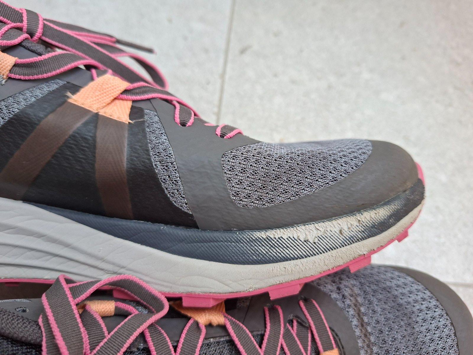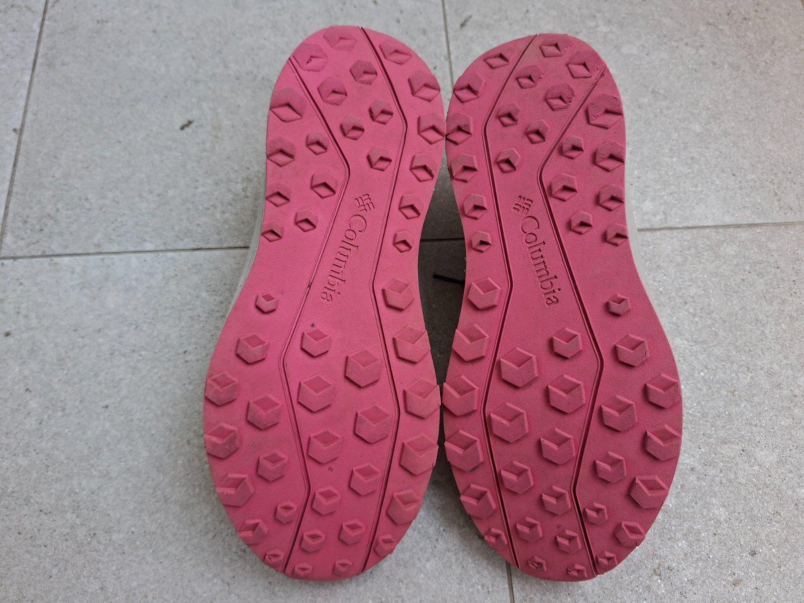 Turistické topánky nosené. Veľkosť 39,5. Vnútorná dĺžka 25,5 cm. Z vnútornej strany pri špičke sú osuchane (vid foto).