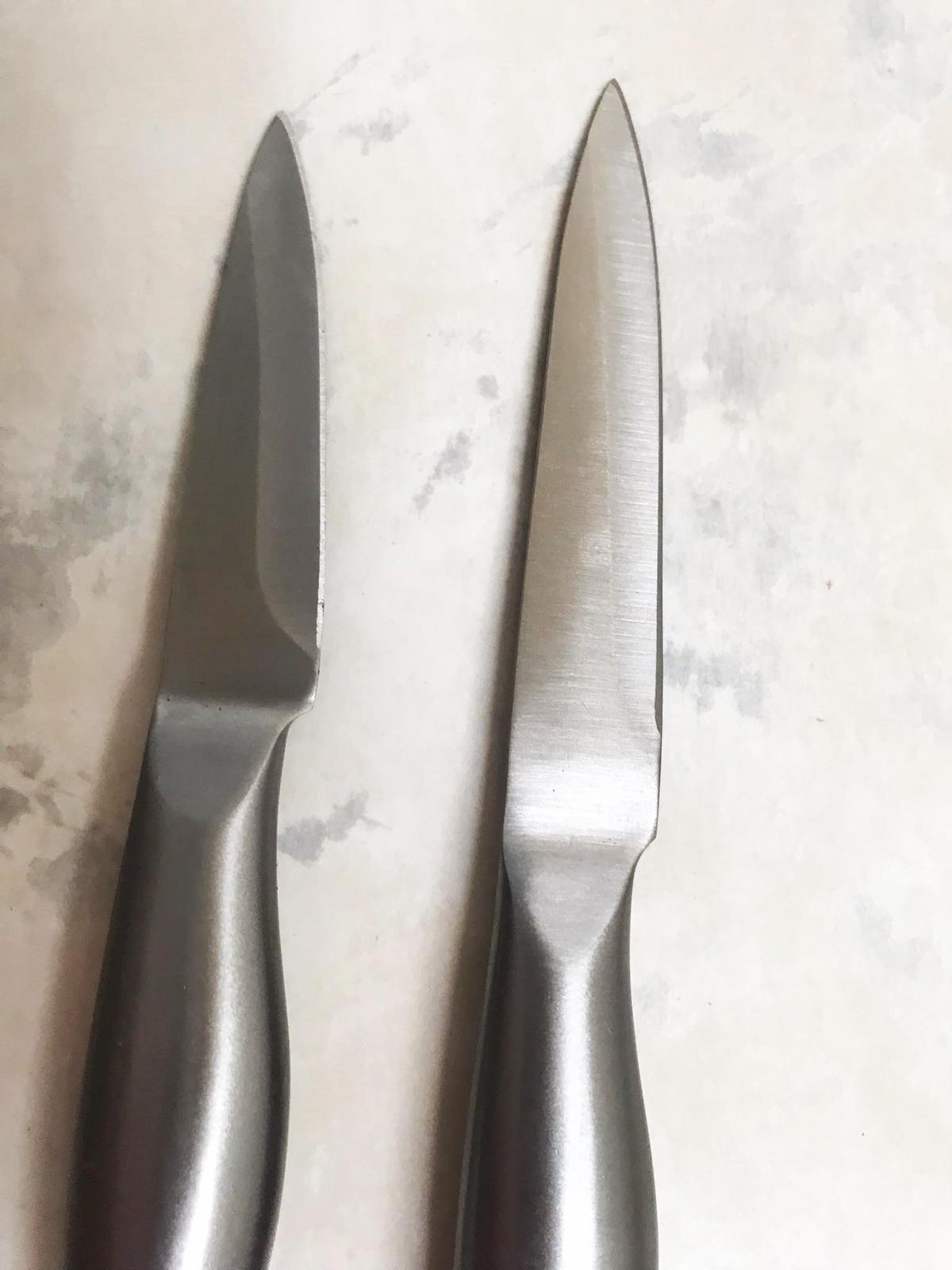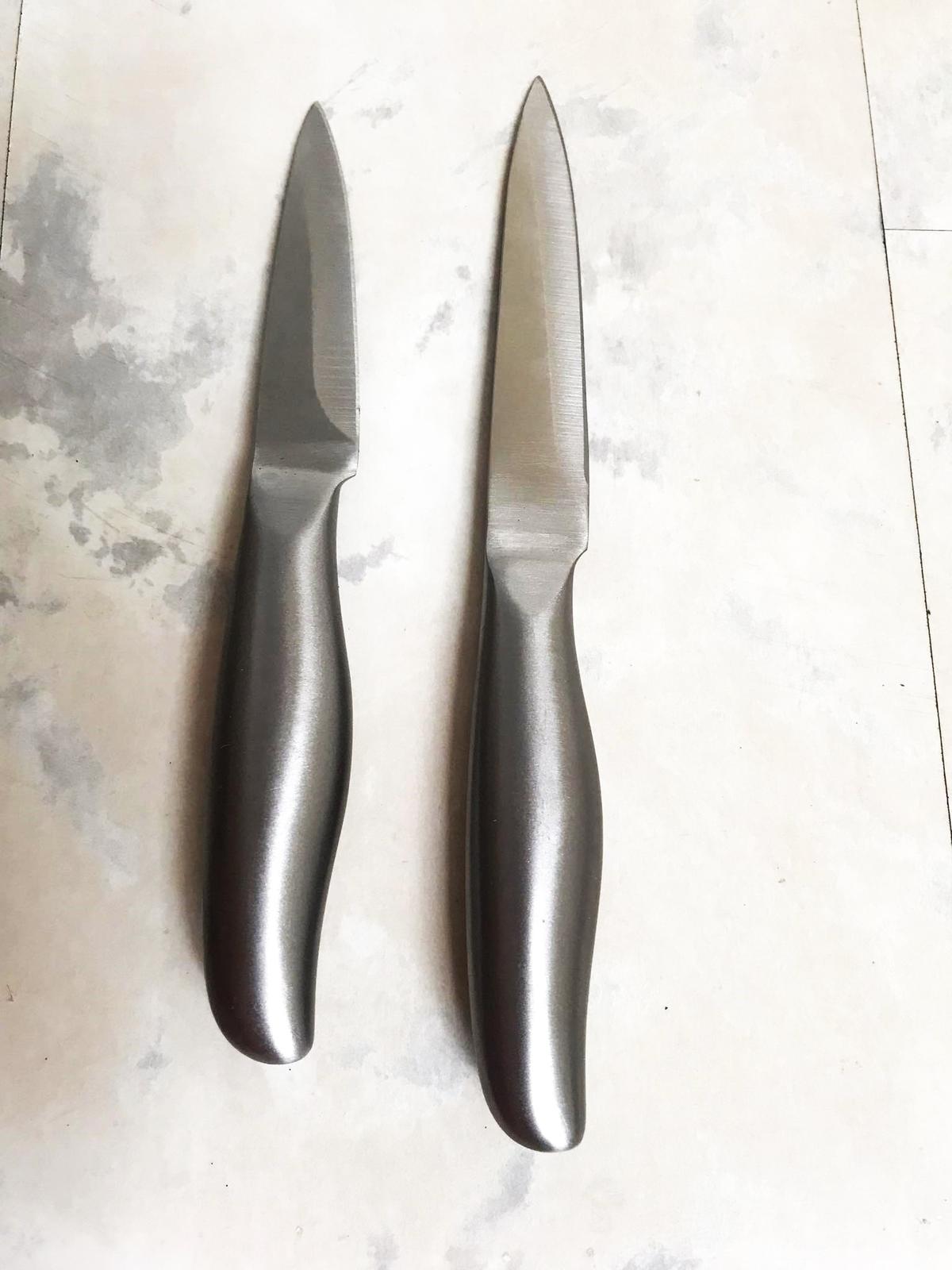 kvalitné ostré nerezové nože dlžka čepele 11 cm/9 cm ,z kvalitnej ocele,je jednoliaty - rúčka pokračuje priamo do čepele,pozri aj :