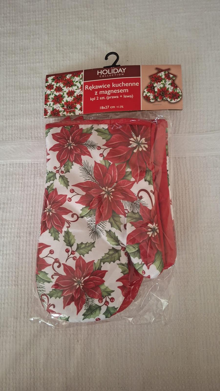 Predám set dvoch kuchynských rukavíc s motívom vianočnej ruže. Rukavice sú nepoužívané, ešte v originálnom balení. Majú v sebe magnet, takže ich môžete jednoducho prichytiť na chladničku alebo rúru a mať ich vždy poruke.