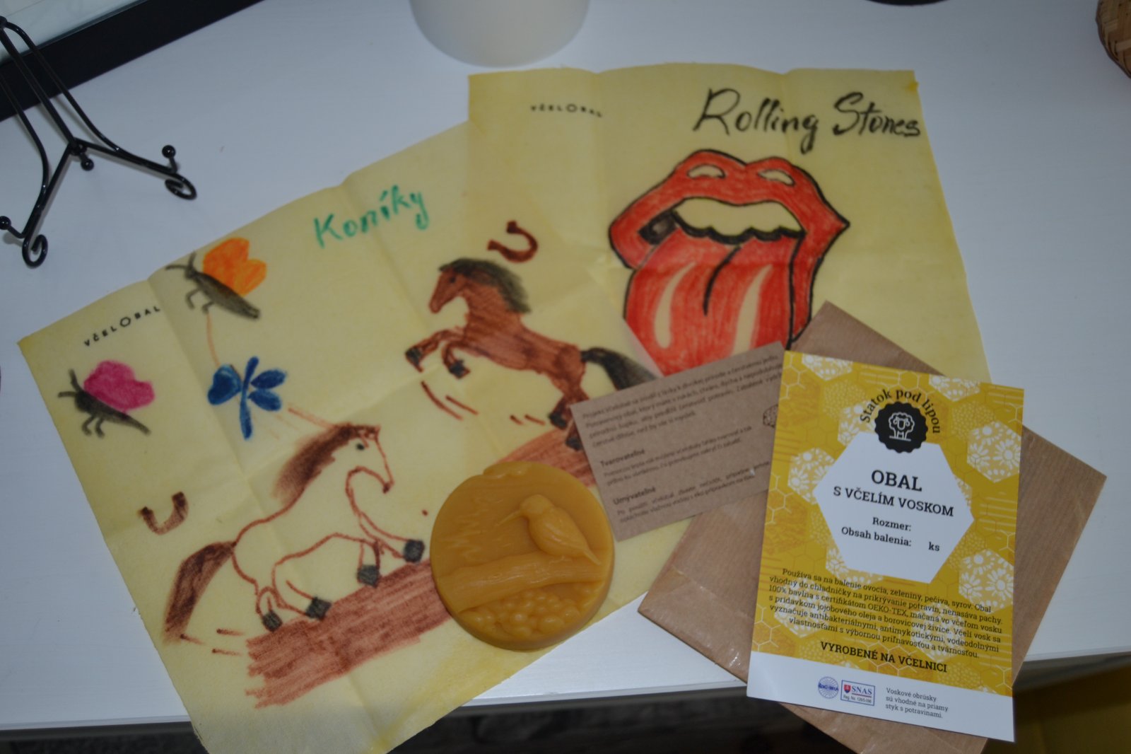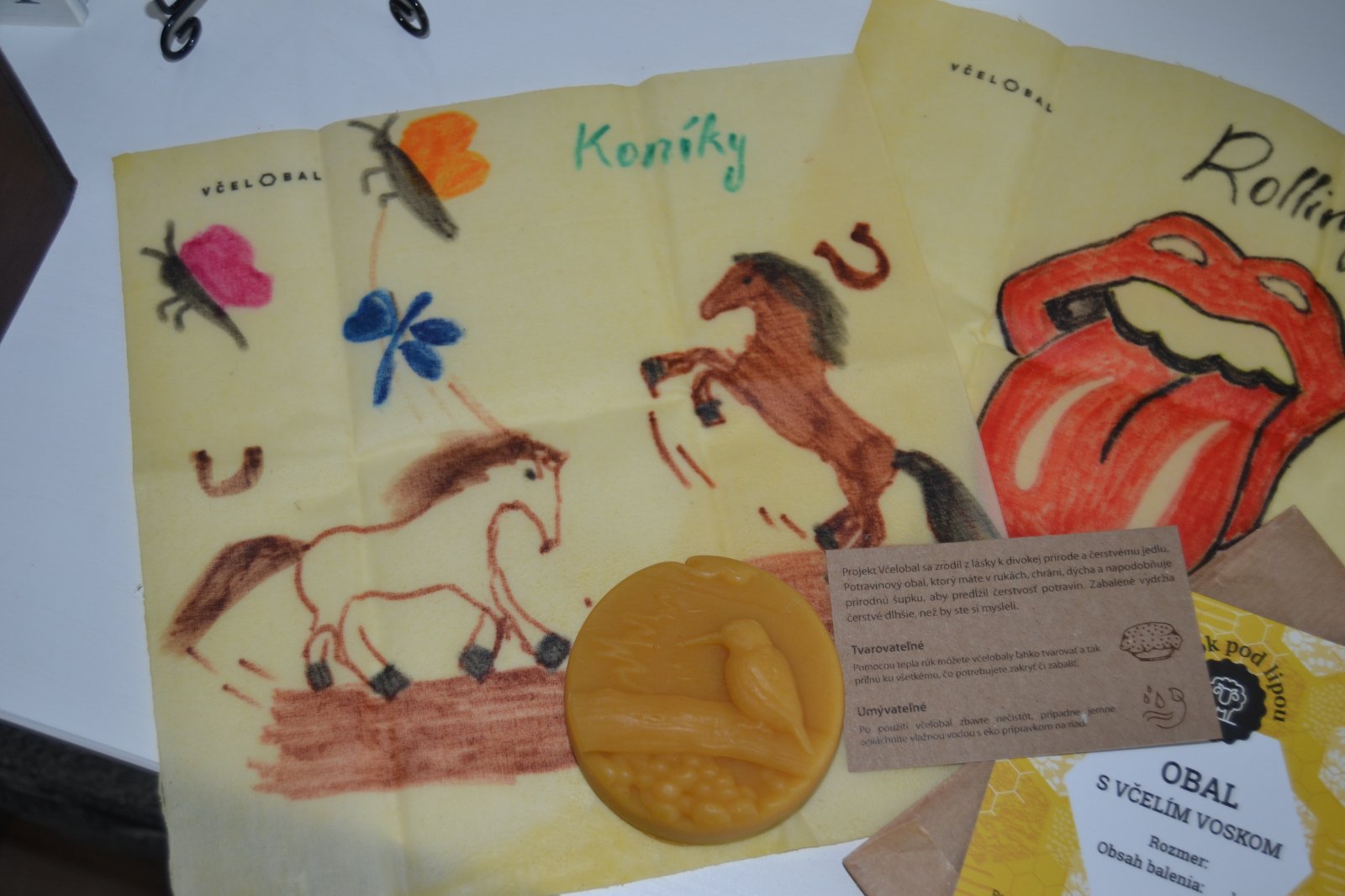 Materiál: bio-bavlna, vosk, jojobový olej, 100 % bavlna, včelí produkt, živica
