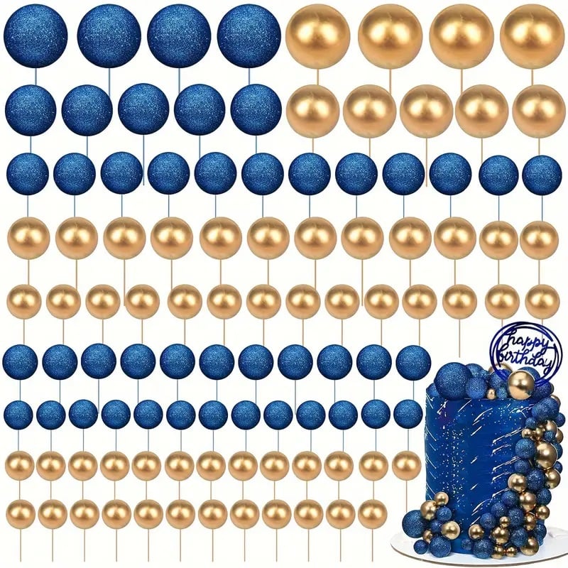 Tortový zápich GULIČKY zlaté+modré (108ks)-skladom
