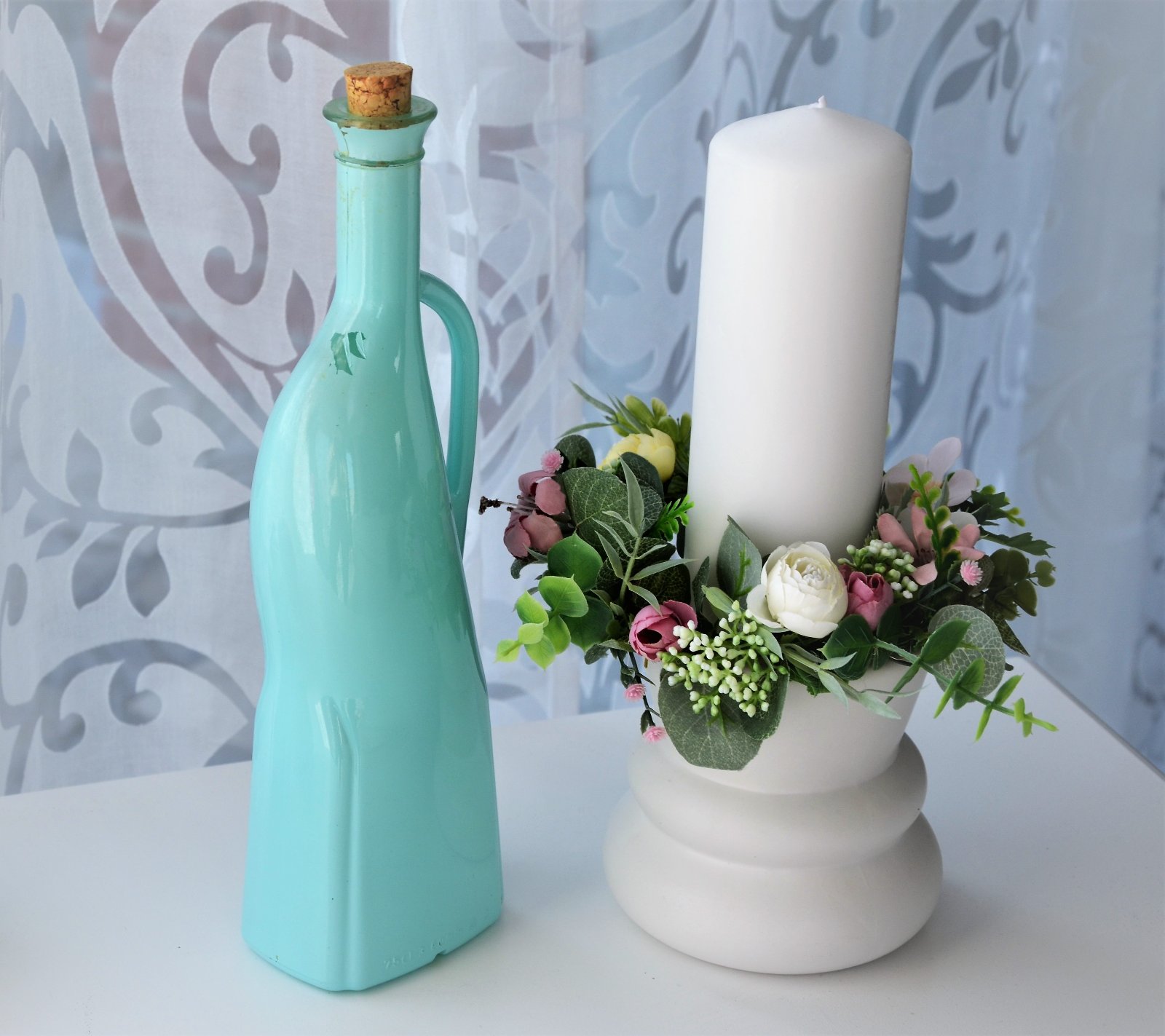 nevymieňam!!fľaša je používaná,sklenená,s korkovým vchnákom,obsah 0,75dcl,vhodné do umývačky riadu,na 2 miestach odlupnutá farba,rozmer 32,5x9cm,,tyrkysová..kuk aj na iné moje inzeráty