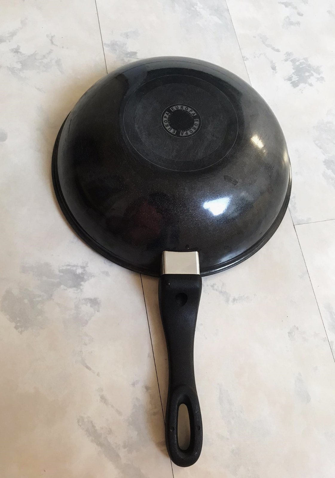 používaná panvica,spodný priemer = 16 cm,vrchný priemer = 30 cm, výška = 8 cm,nevodivá rúčka,nevhodná na indukciu