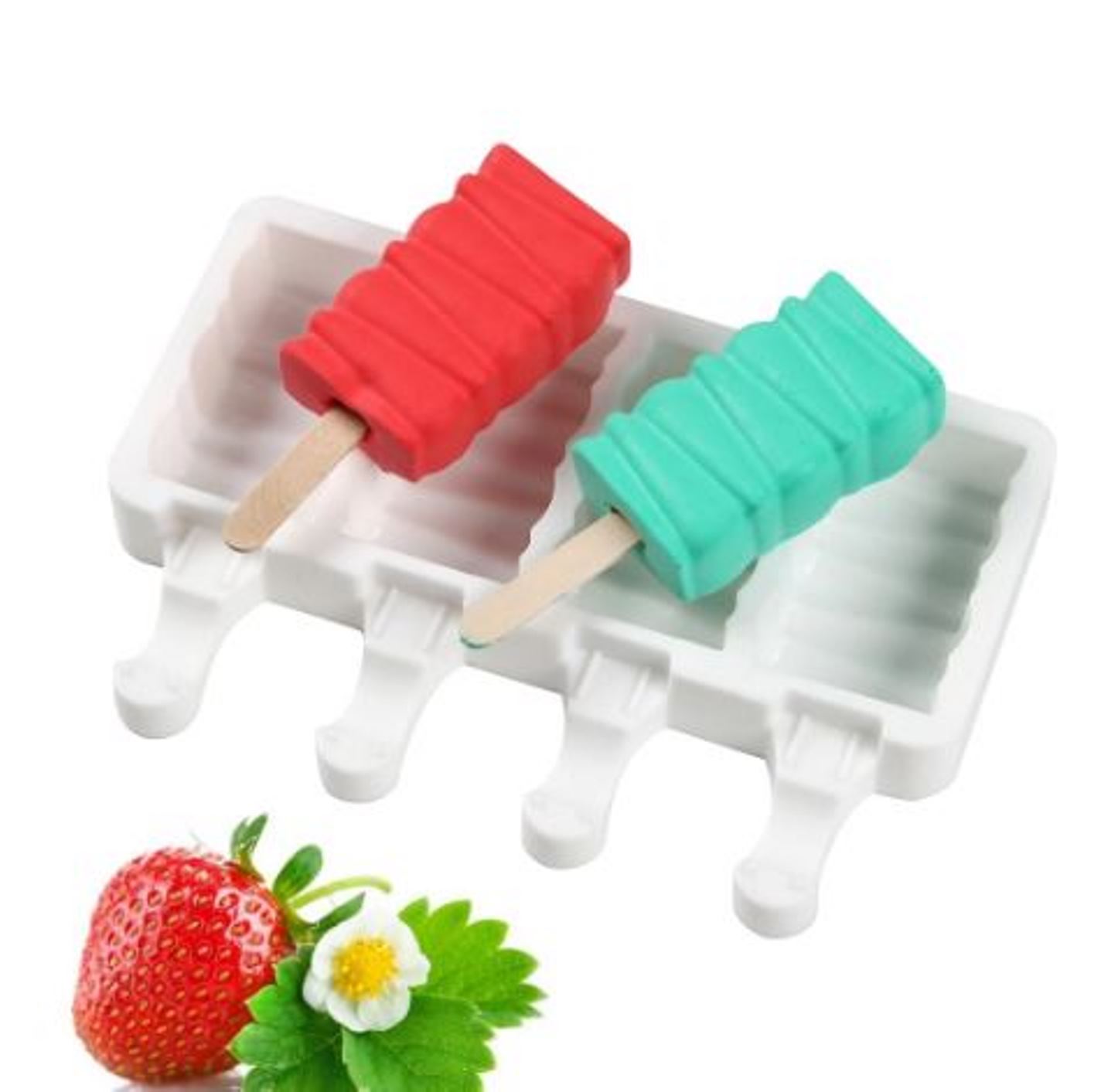 Pružná a zároveň stabilná forma na nanuky. Na spodnej časti sú praktické otvory na zasunutie drievok do zmrzliny.