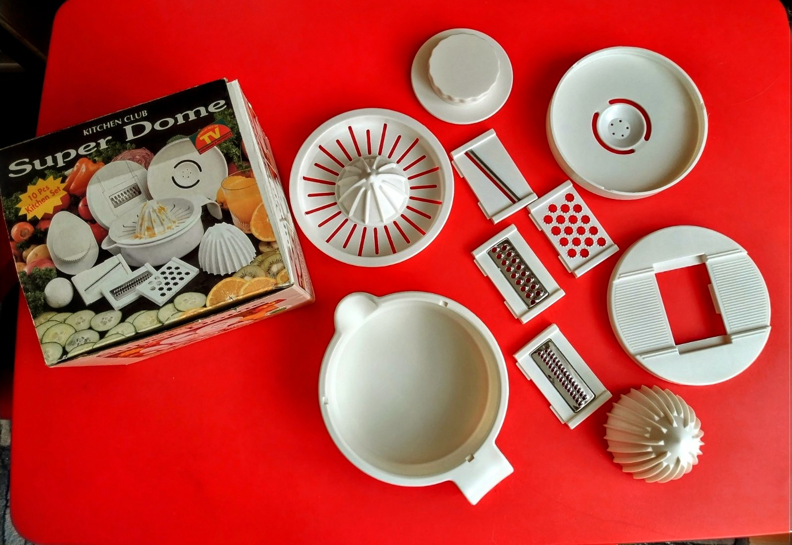 Multifunkčné strúhadlo, krájač na ovocie, zeleninu, vajíčka, čokoládu, odšťavovač, ako nové.