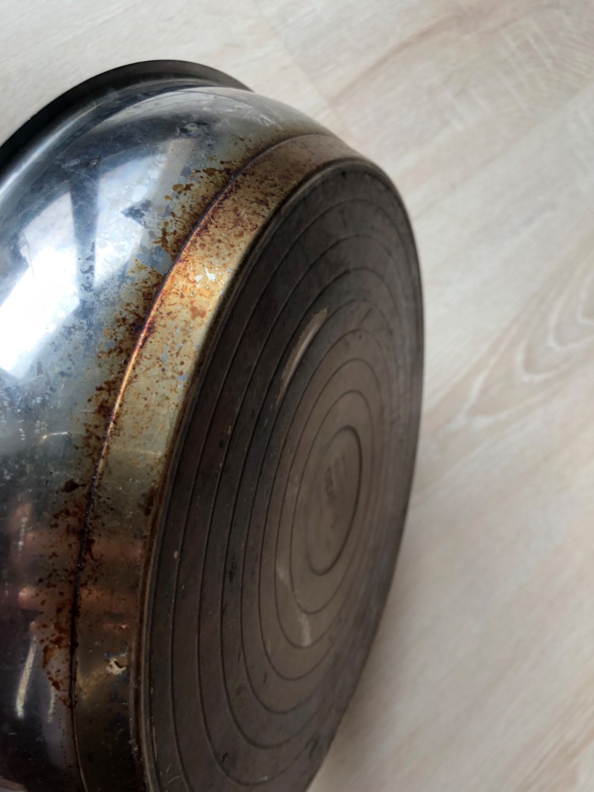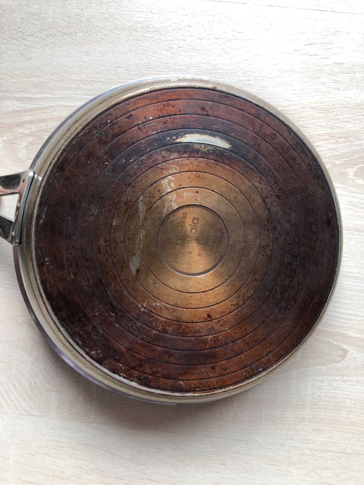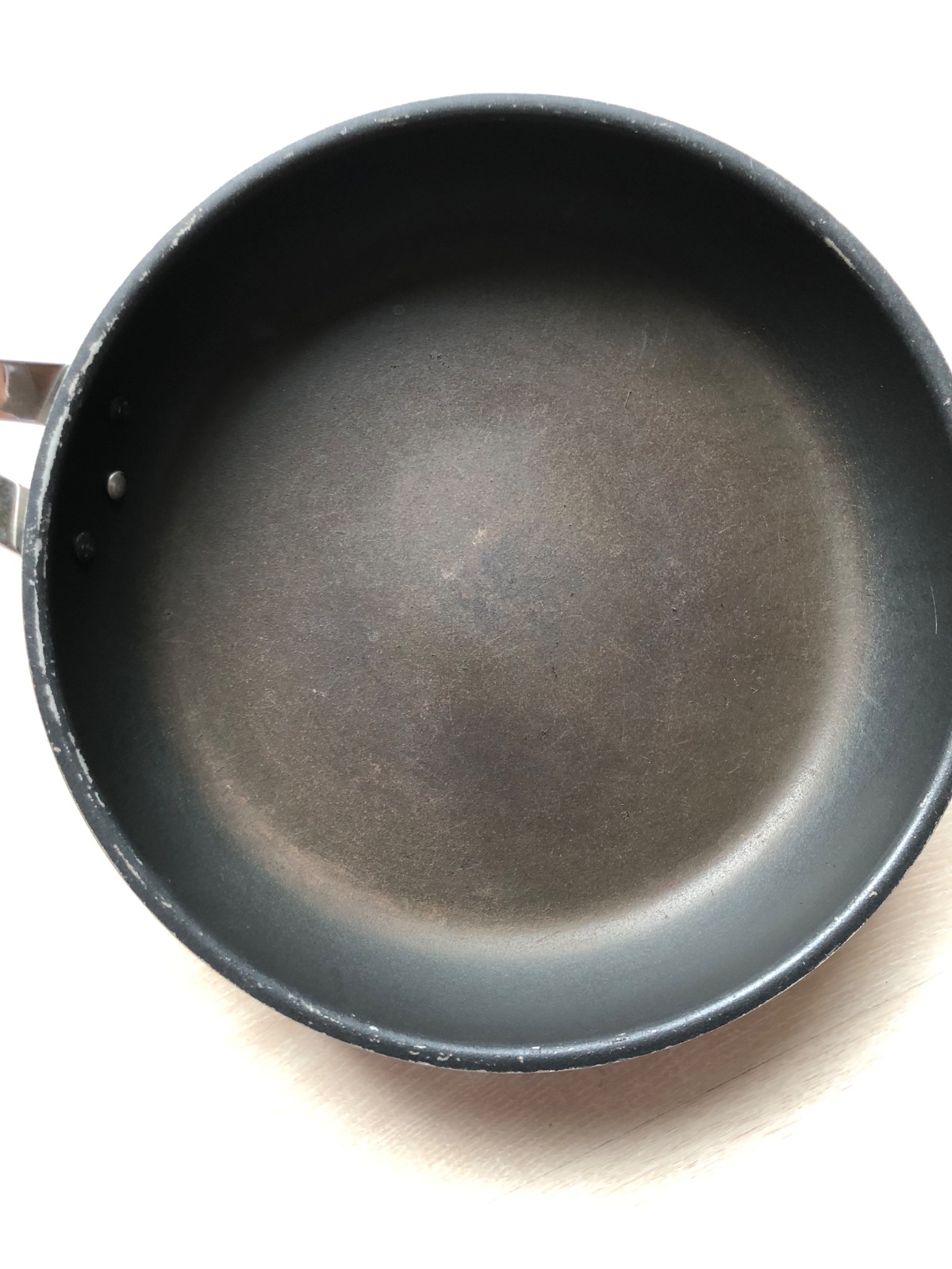 pouzivana nerezova panvica s neprilnavym povrchom, ma uz skrabanceky, vhodna aj na indukcnu dosku, priemer 26cm