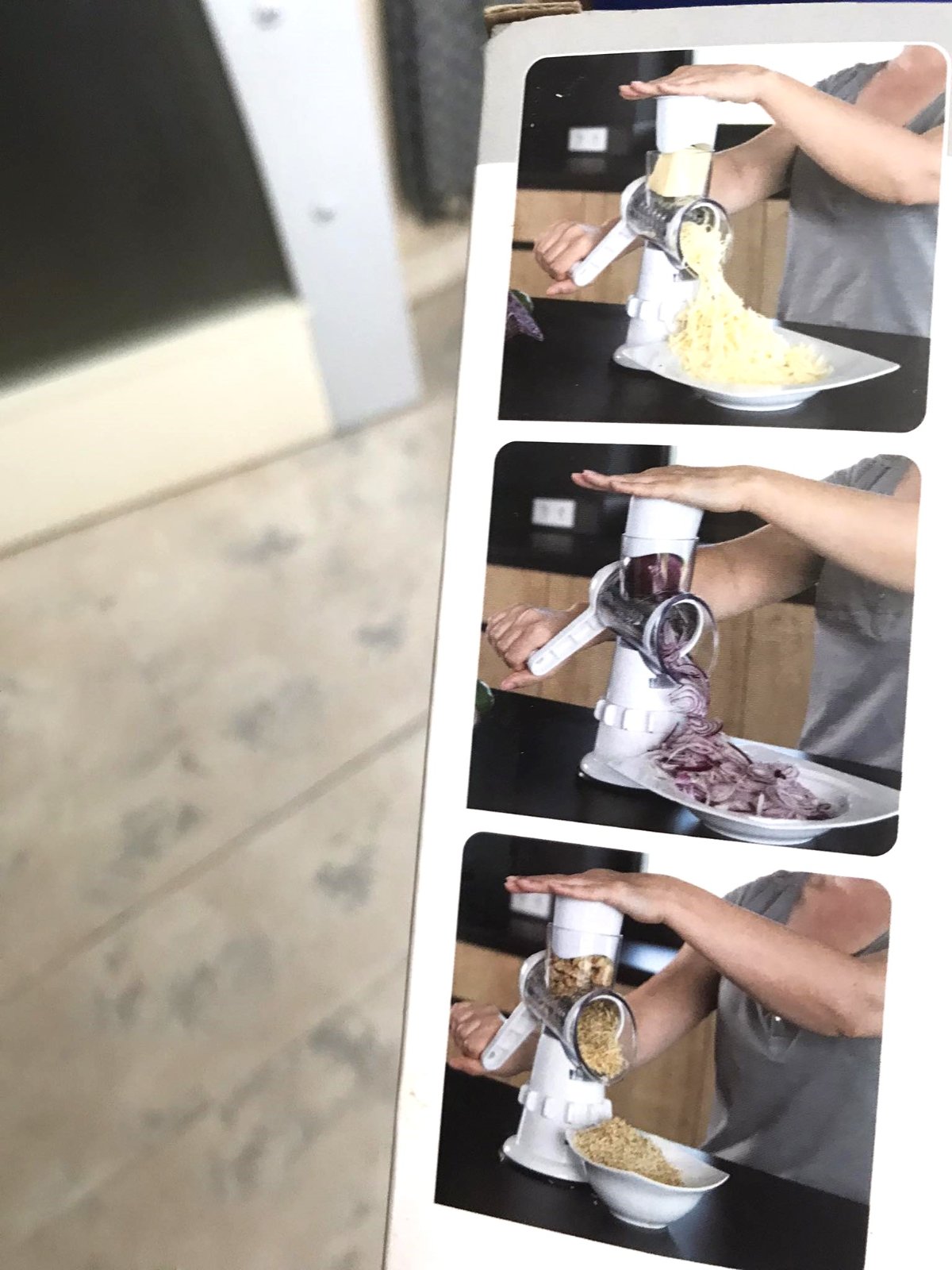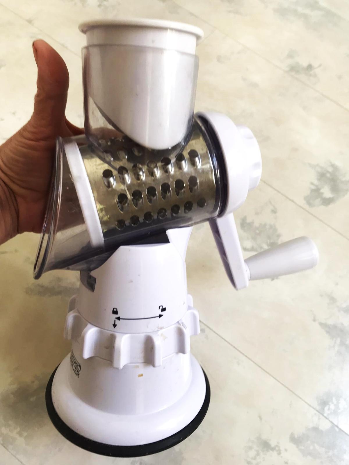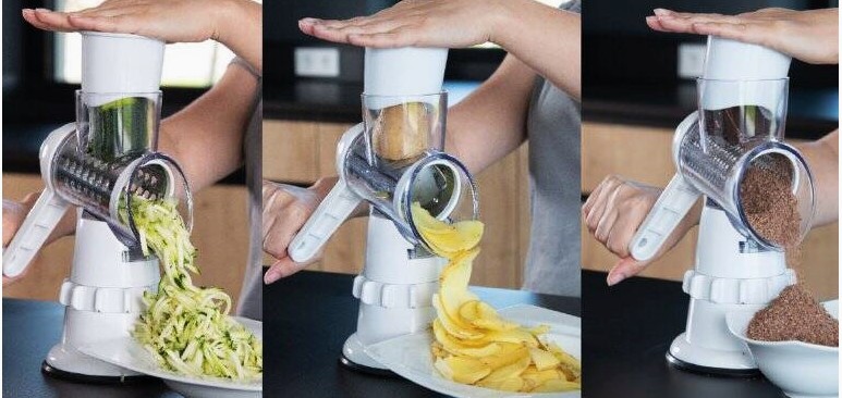 krájač 3 v 1, na krájanie, strúhanie najemno a strúhanie nahrubo ,veľmi ostré čepele z nehrdzavejúcej ocele,systém na pevné uchytenie,nešmýka sa,piest na zatlačenie pre bezpečné použitie,možno umývať v umývačke,viac - viď link :