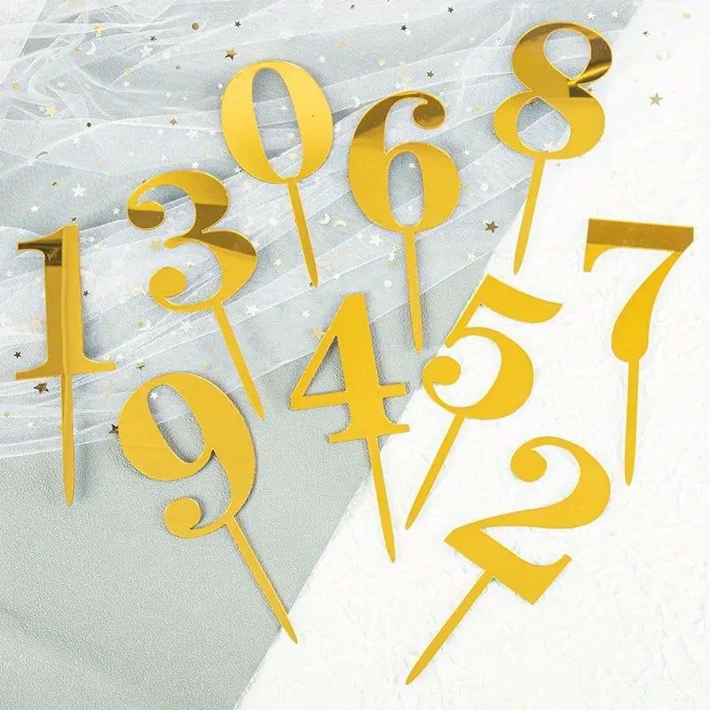 Tortový zápich ČÍSLICE zlaté (10ks) - skladom