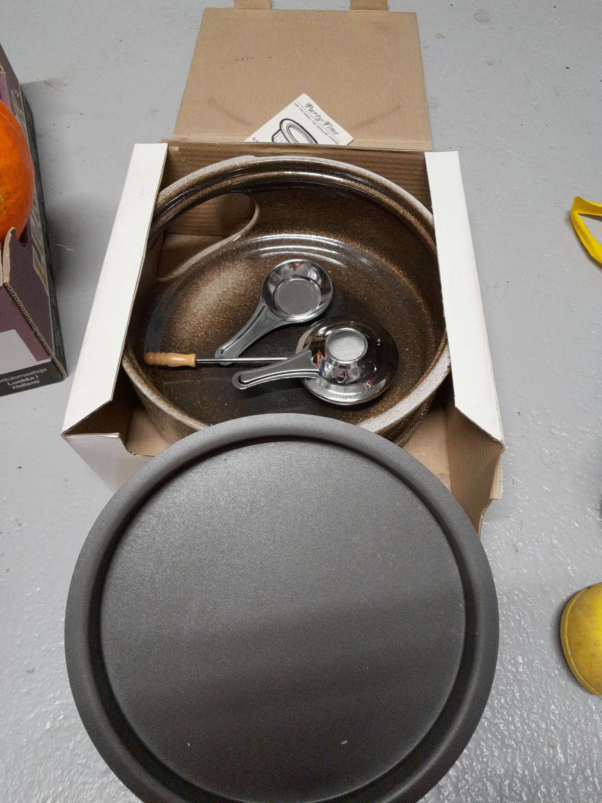 Keramický gril na stôl. Iba vybalený. Nevhodný darček, posúvame ďalej.