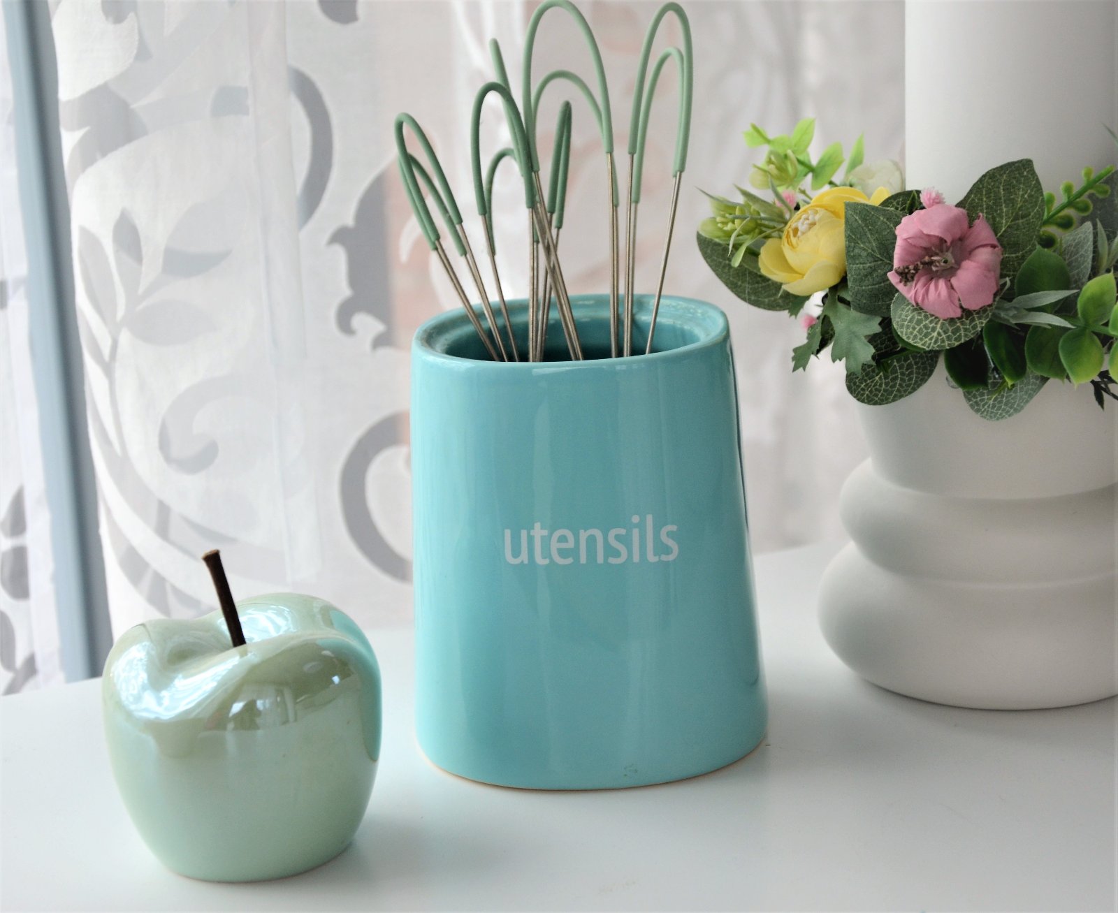 nevymieňam!!použitá keramická,doplnky ako ananás na foto nepredávam!..výška 14cm,šírka 10cm.krásna tirkys farba..kuk aj na iné moje inzeráty