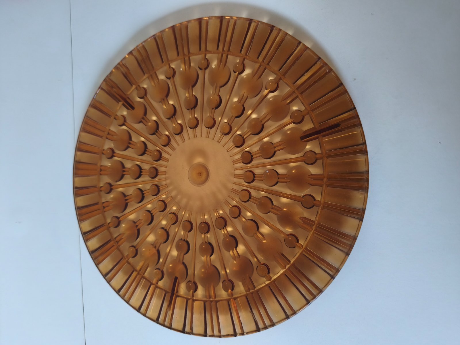 Retro tácka nedeje farby. Má 3 malé nožičky. Materiál je plast