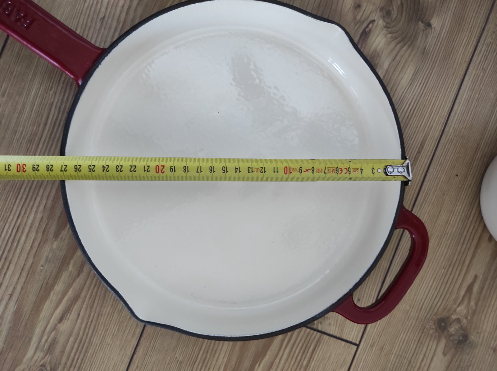 Panvicu som použila pár razy na pečené buchty a zapekanie mäsa. Doma používaná na indukčné varnej doske a možnosť vložiť aj do rúry. Povrch je smaltovaný, takže je jednoduchšia na údržbu, ako iný liatinový riad. Len osobný odber v Pezinku. Je dosť ťažká, mne to osobne prekáža, kvôli slabosti v rukách, iní môžu mať ako domácu posilňovňu. 😊