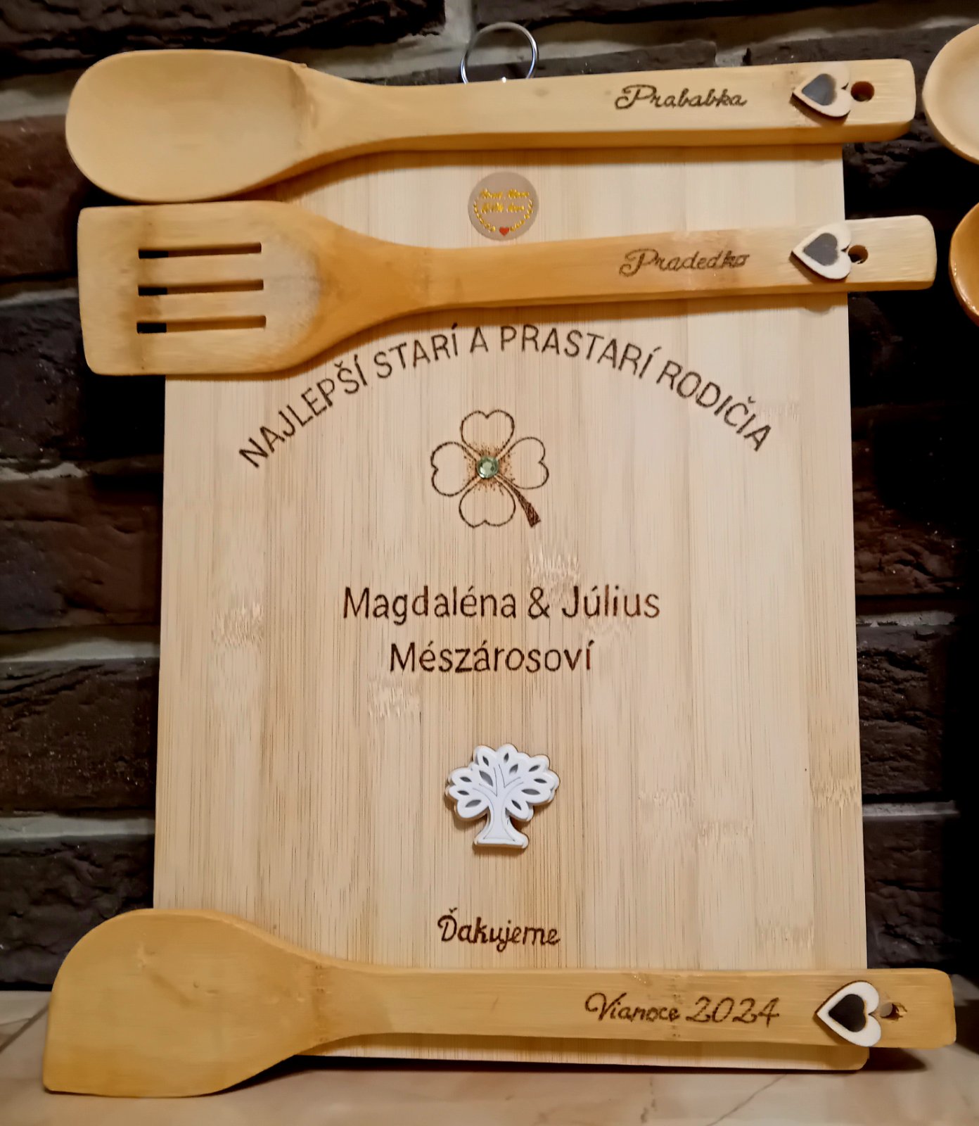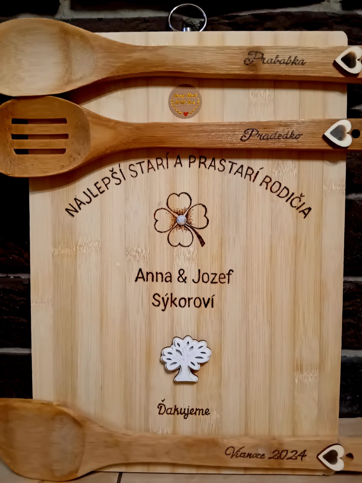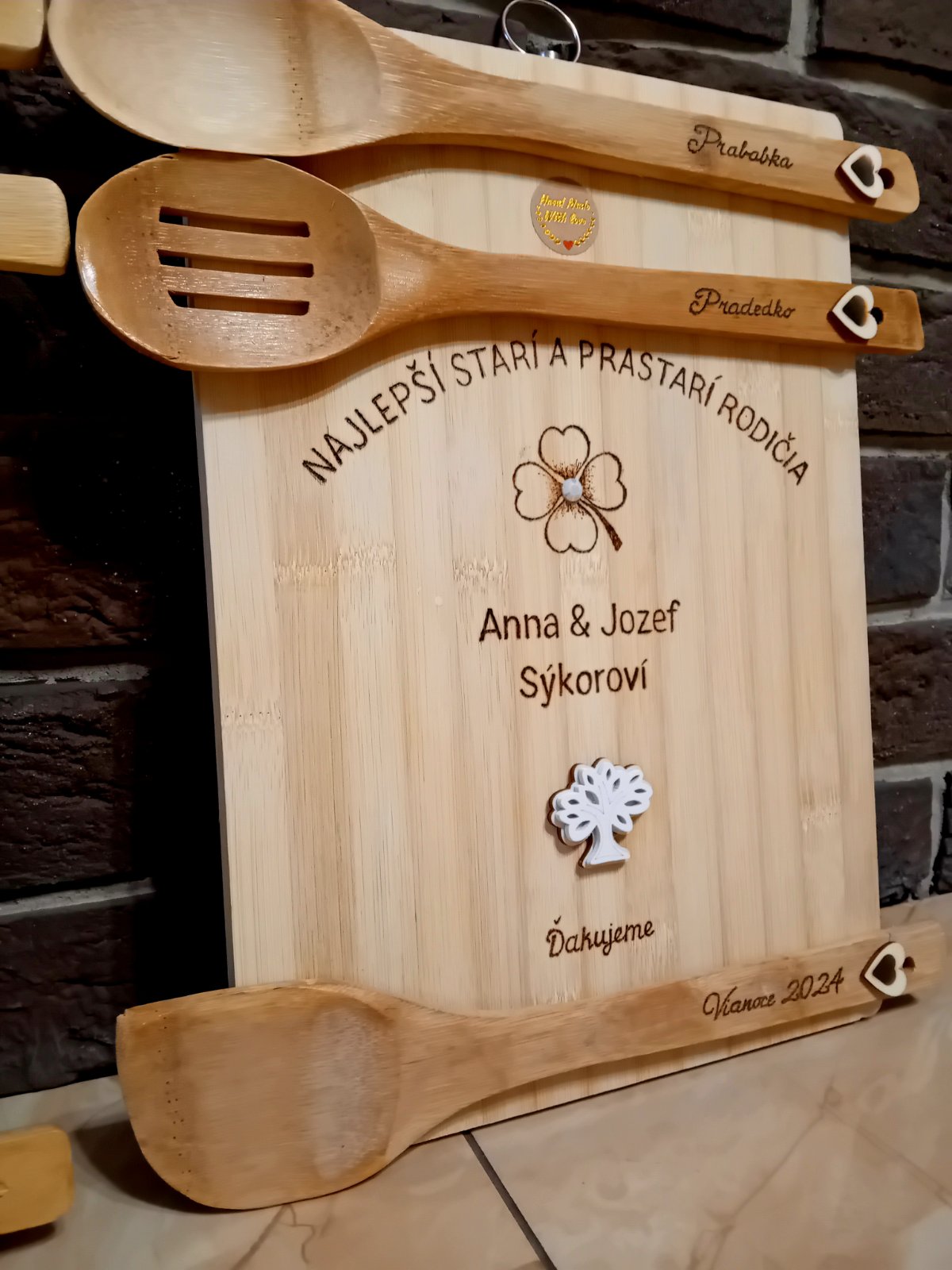 Ručne gravírované VYZNAMENANIE na drevenej doske s vareškami, ktoré je vhodné aj na používanie. Komponenty nalepené obojstrannou páskou, takže sa dajú v prípade používania ľahko odlepiť. Text podľa želania. Cena 15,50€ v celofánovom zabalení.