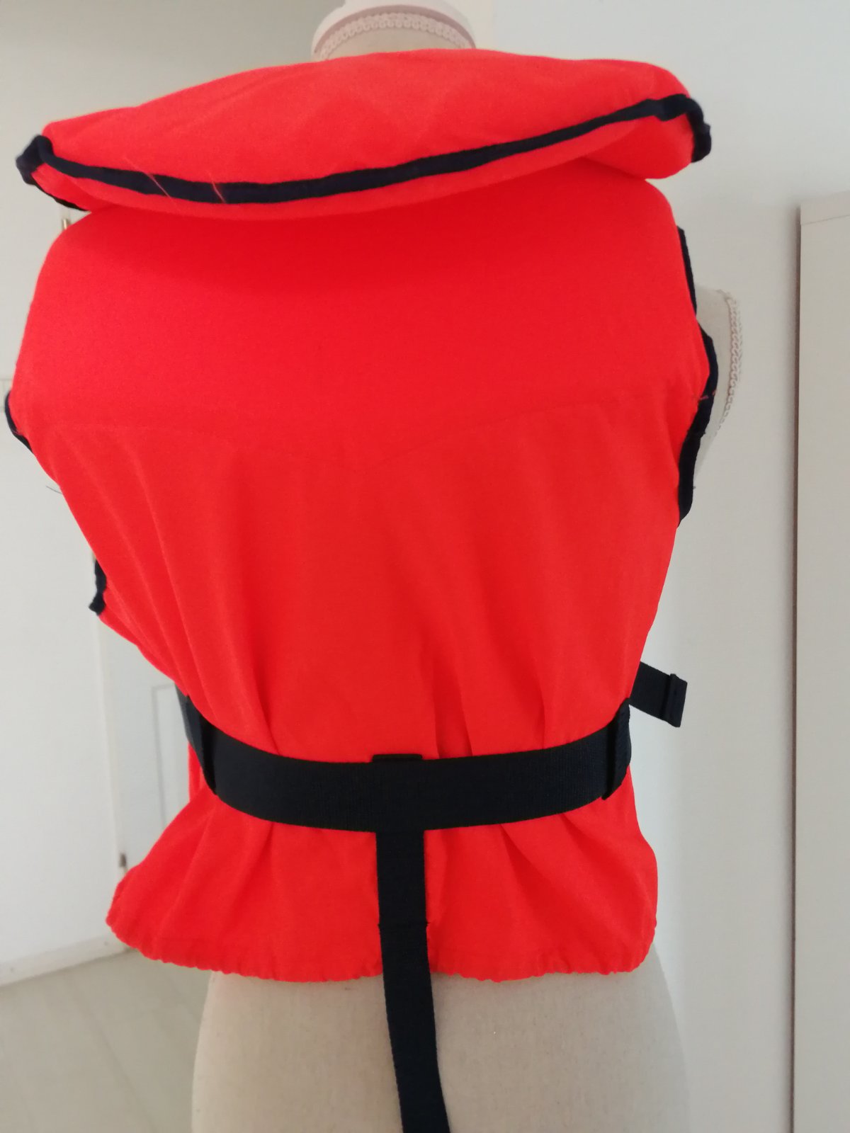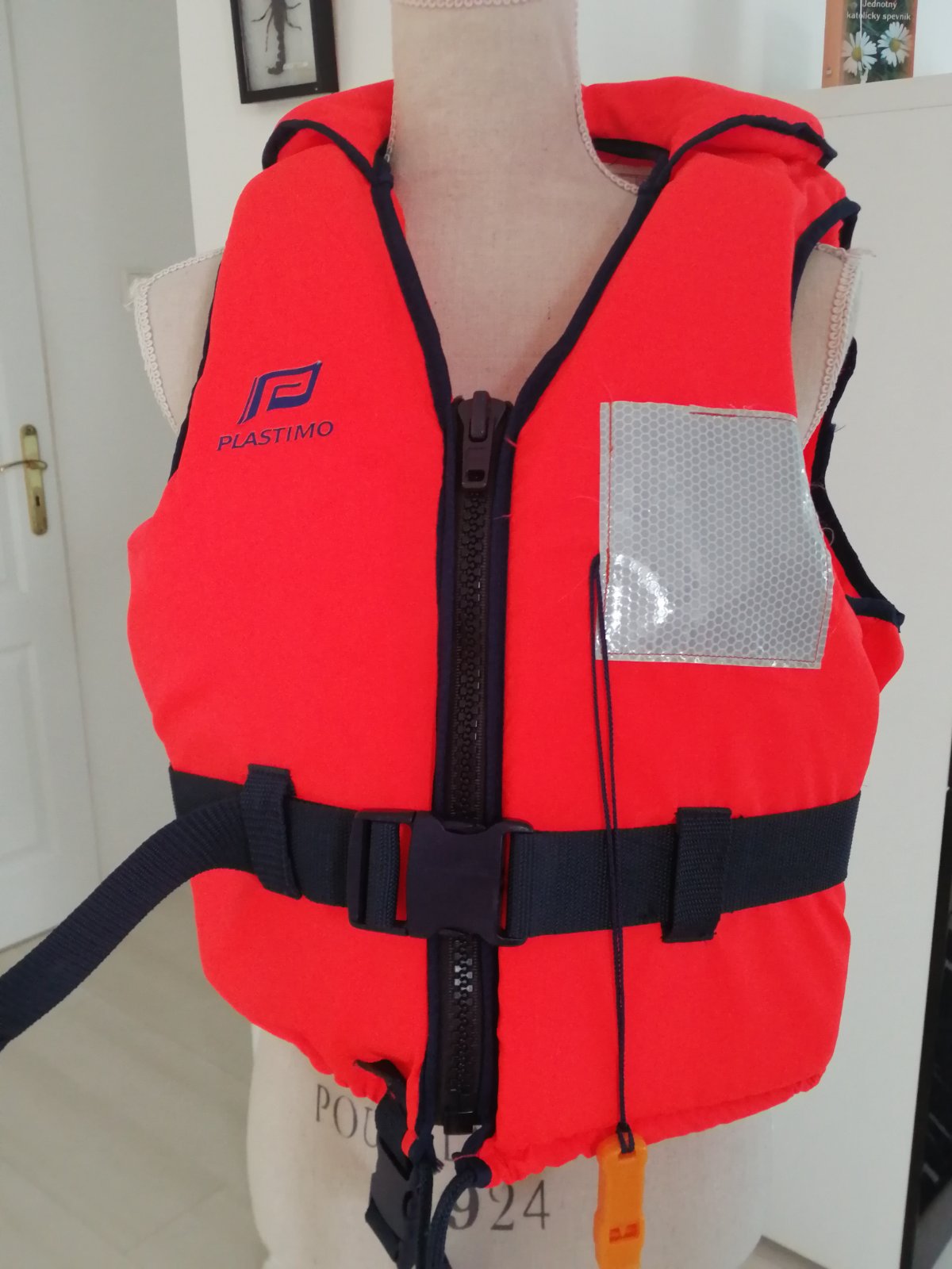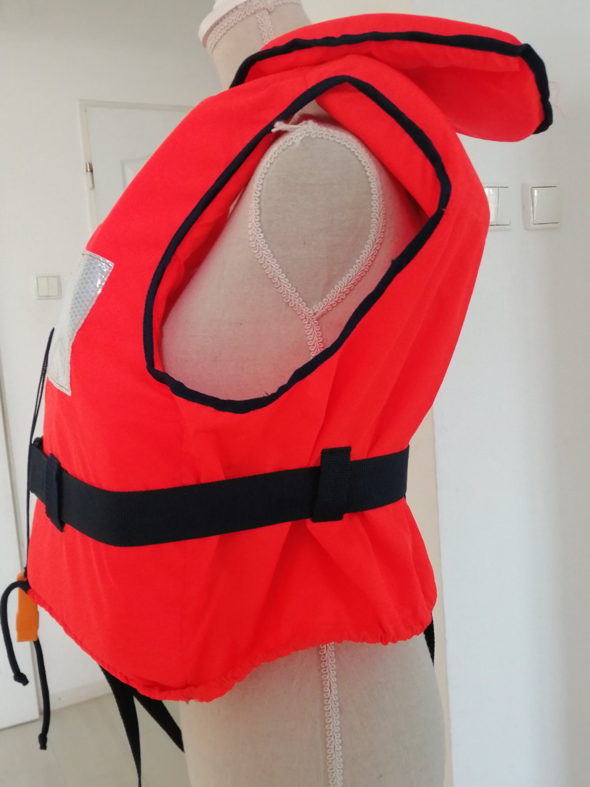 1x oblecena ale nevyuzita zachranna vesta, sirka pod pazami aj dolu 60 cm