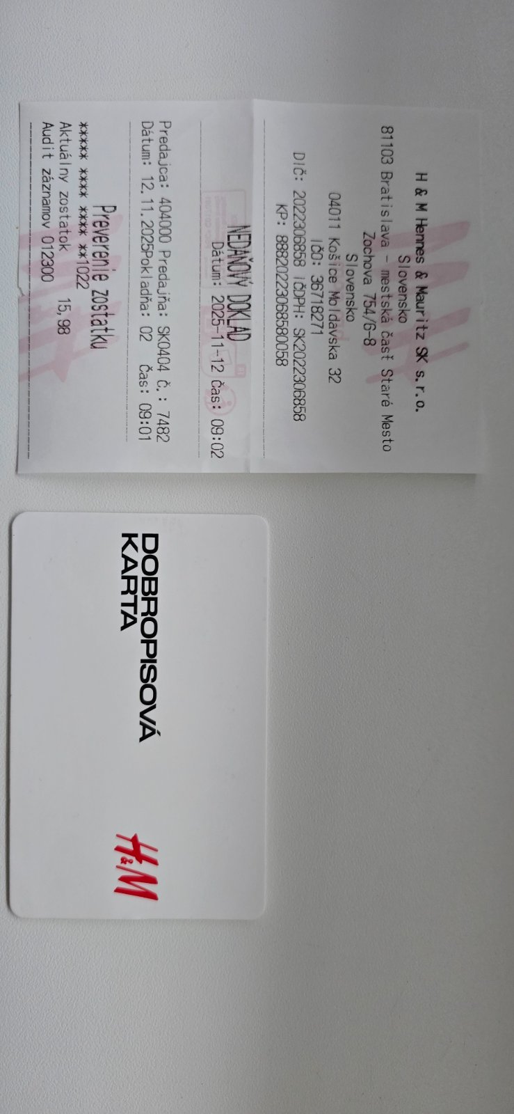 Prosím vás vie mi niekto vymenit HM kartu za peniaze? Dnes som bola skontrolovat HM kartu je tam zostatok 15.98€ Je platná do budúceho roka do konca decembra 2026
