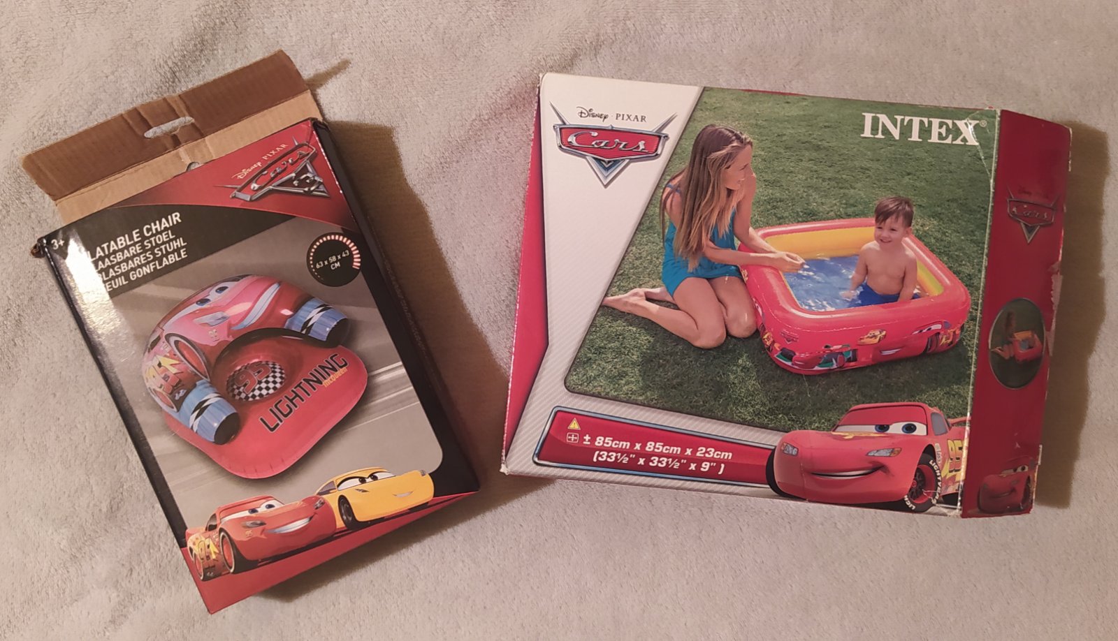 Predám detský nafukovací bazénik 85x85cm a nafukovacie kresielko s motívom Autá.