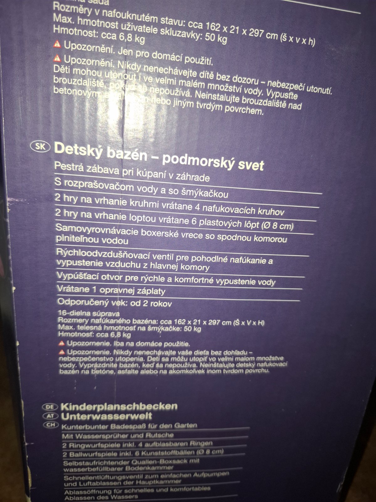 Bazen je par krat pouzity, je v super stave, ma 3komory ta prvá vrchna cast sfukava-je tam mala dierka, treba ju zalepit. Aj bez toho ze nie je prva nafukana je dost vysoky a staci na šantenie pre ...