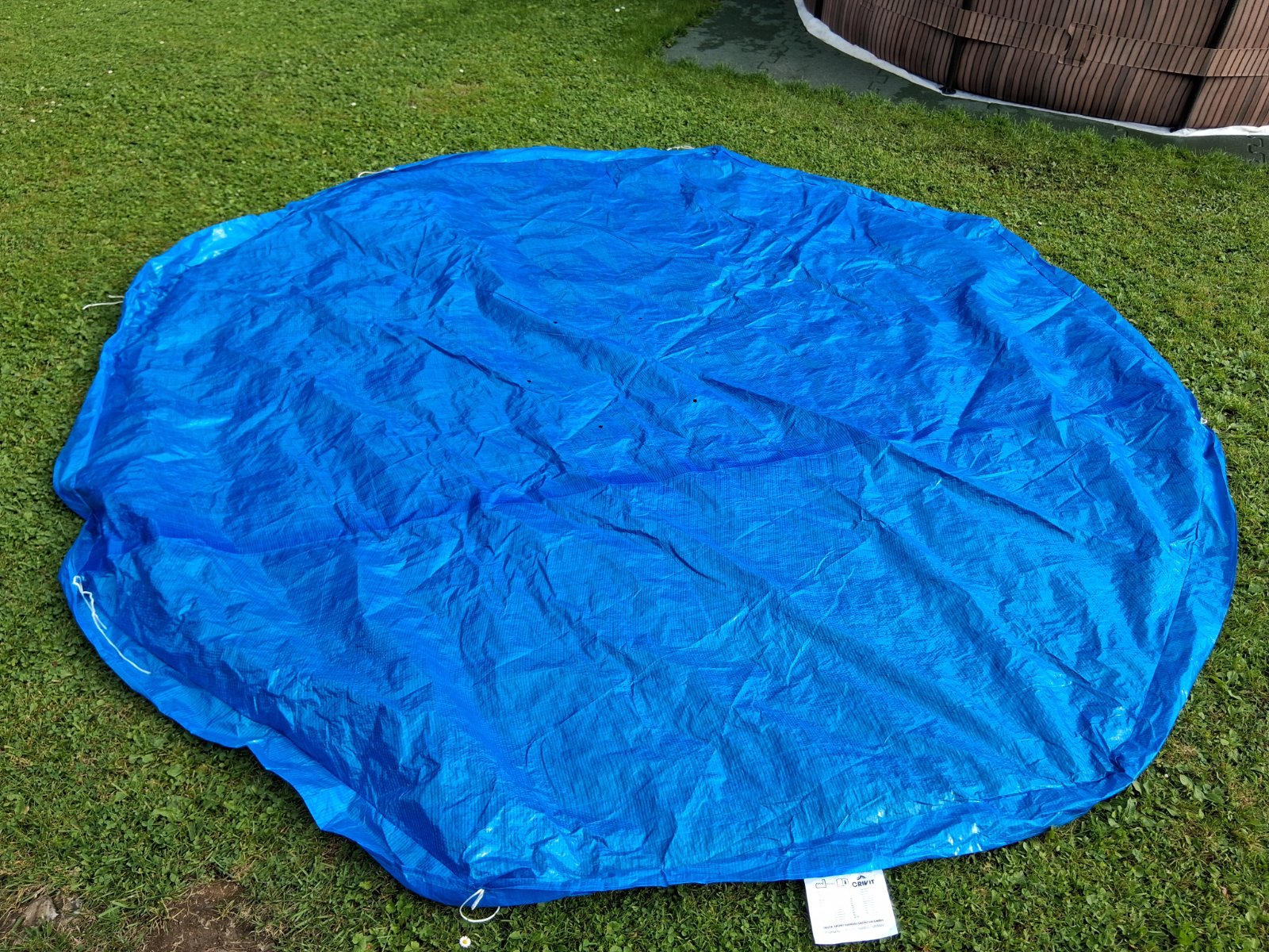 Posuvam novu, len odskusanu zakryvaciu plachtu na bazen, priemer 3m, nam nesadla na nas bazen.