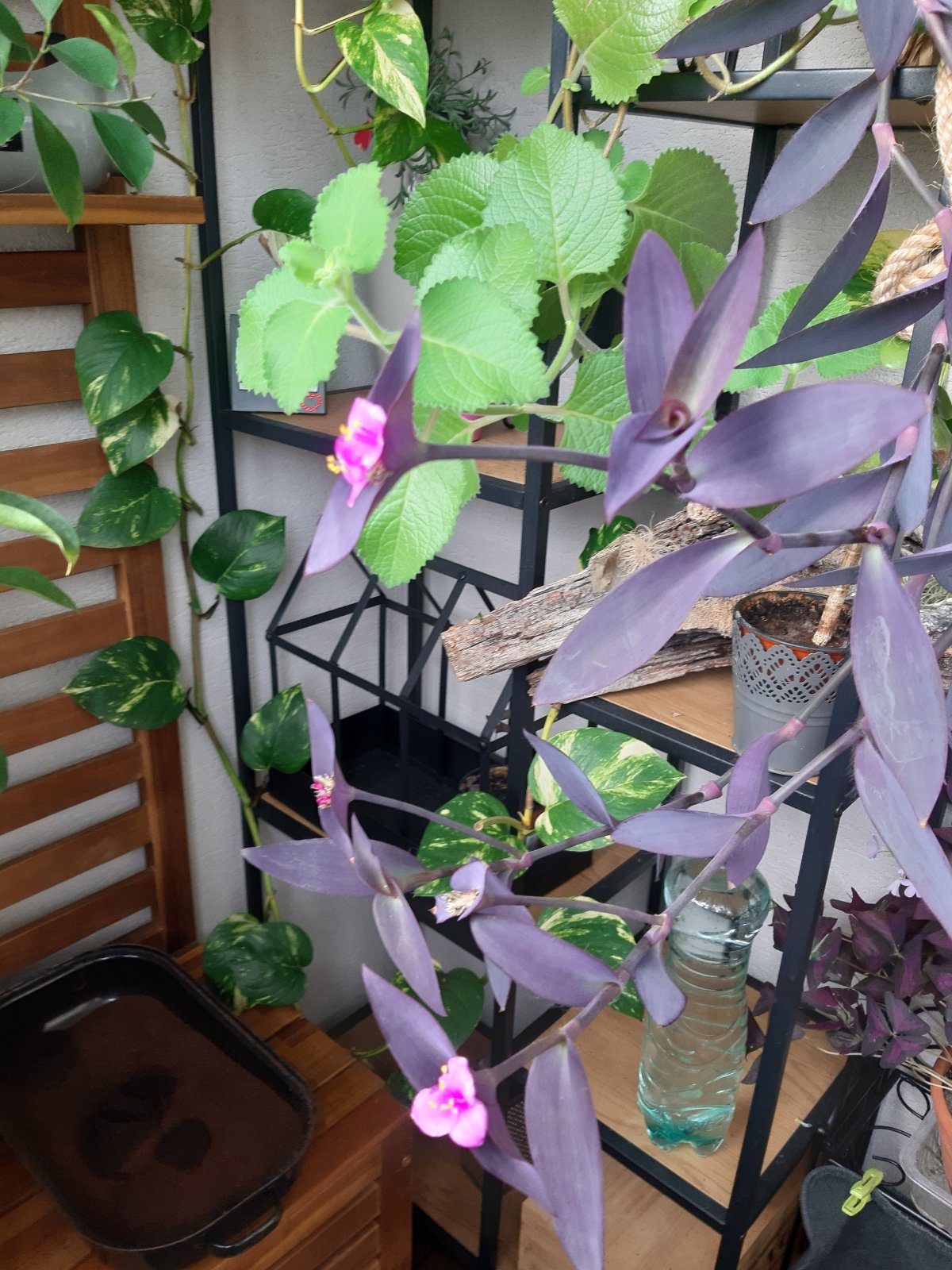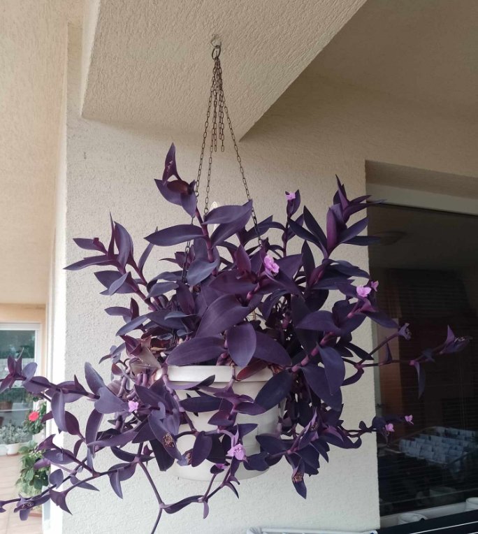 Krásna fialová izbová rastlinka Tradeskancia, má jemné zamatové fialové listy posiate jemnými chĺpkami, kvitne krásne drobnými ružovými kvietkami, listy časom prevísajú, okrasná predovšetkým listom, je úplne nenáročná, dobre sa jej darí aj vonku, zakorenené výhonky 10-15 cm. Tradeskancia je najkrajšia v závesných nádobách alebo na okraji výsadby, pretože vytvára atraktívne previsy.