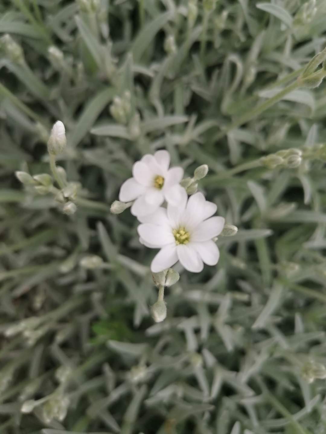 Ťahava rastlina kvitne na bielo.