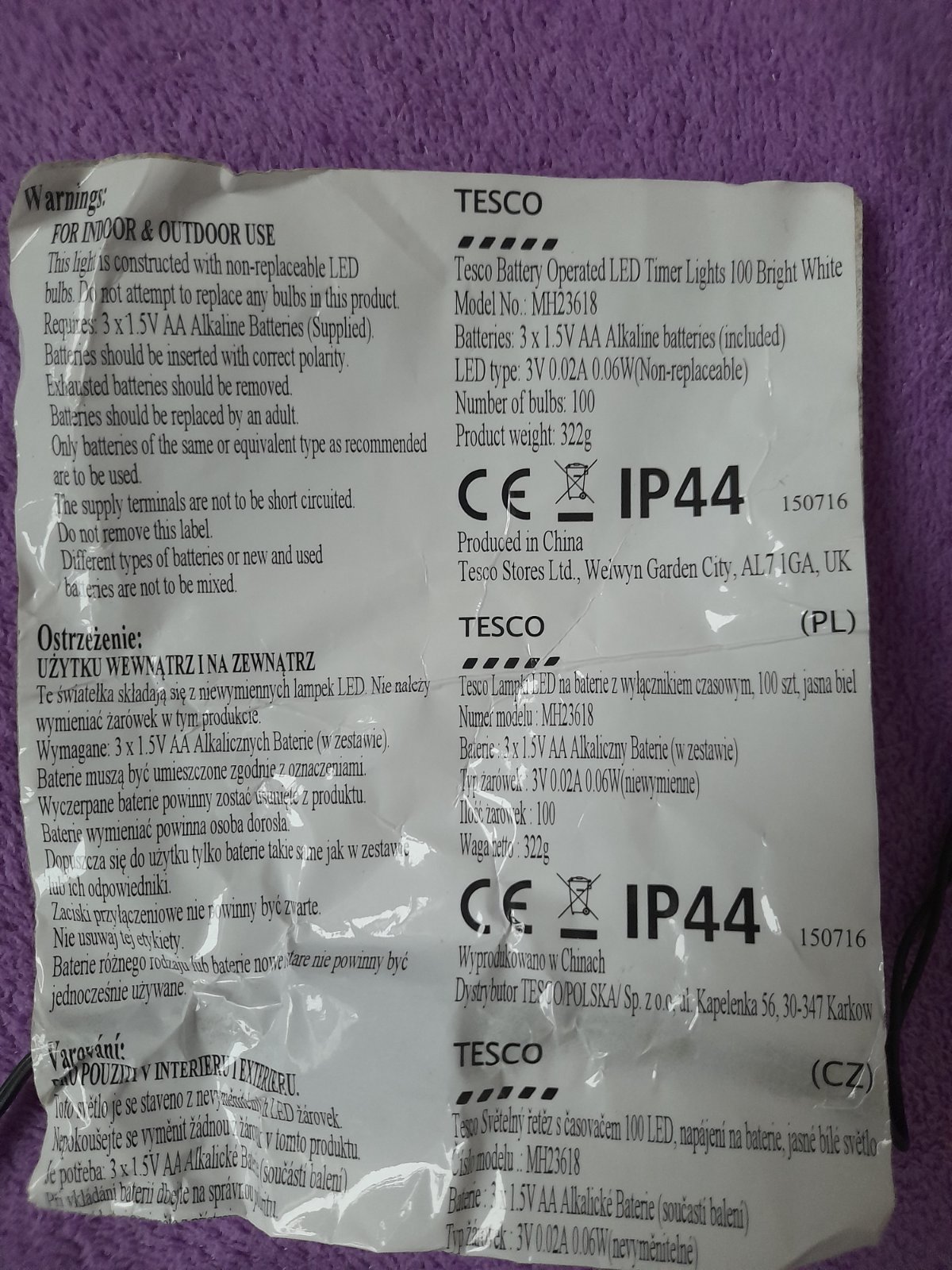 Baterie 3 × 15V AA .Počet žiaroviek 100.Typ žiaroviek 3V
