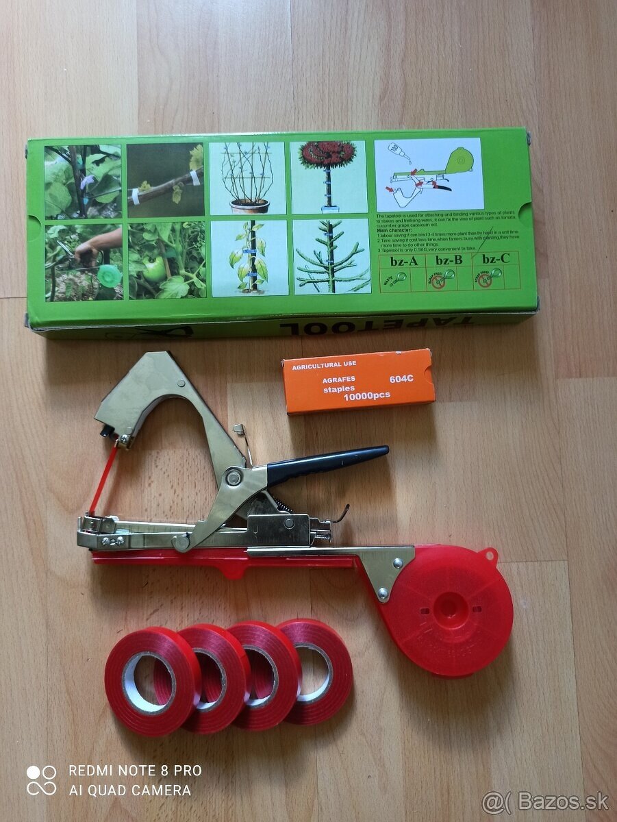 Predám NOVE viazacie kliešte na paradajky, uhorky, kvety, vinič a pod., úplne nové... K tomu sú 5ks kotúče (jeden kotúč už v kliešťach) a balík spiniek. Super vecička, viažete rýchlosťou blesku 100korenov paradajok mi trvá 15min. Ja som veľmi spokojná s touto viazačkou.