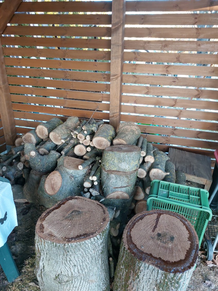 Ponúkam palivové orechové drevo (bez dvoch veľkých pníkov vpredu na fotke). Odvoz nezabezpečujem. Viac info po telefóne 0948285405.