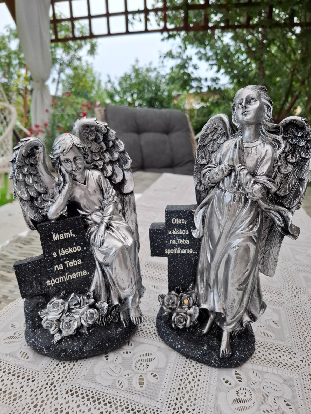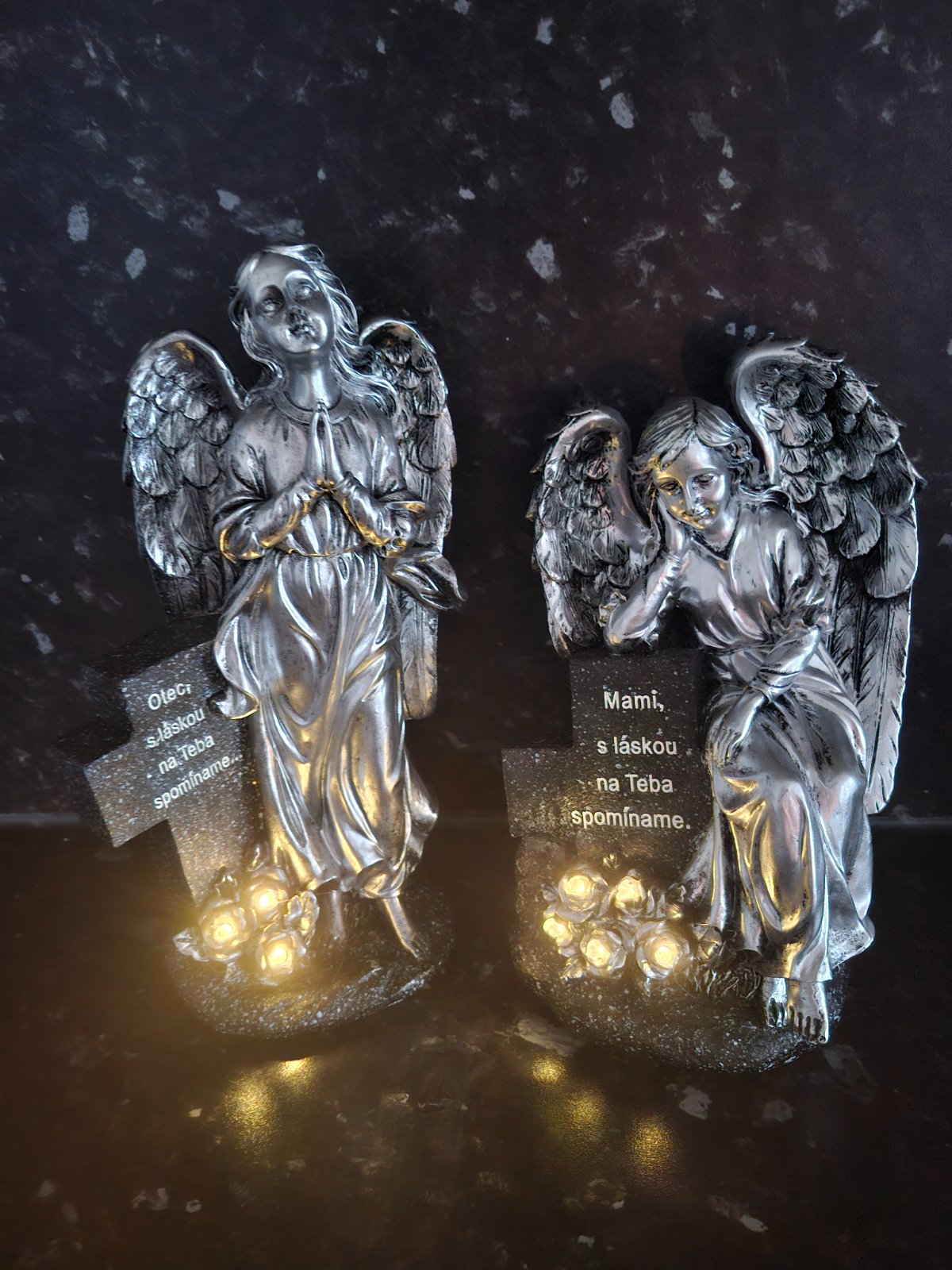 Krasny novy solarny anjel ,nabíjanie na slnko ,jeden s textom pre mamu druhy pre otca,vyssi rozmer 29x14cm,nizsi 25x14cm,oba zabalené v krabici,cena za kus