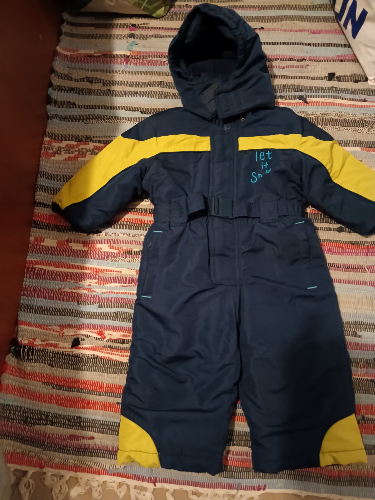 Predám zimný overal s kapucňou dĺžka 65 cm, vnútorná dĺžka nohavice 21 cm, šírka 36 cm, dĺžka rukáva od krku 34 cm.