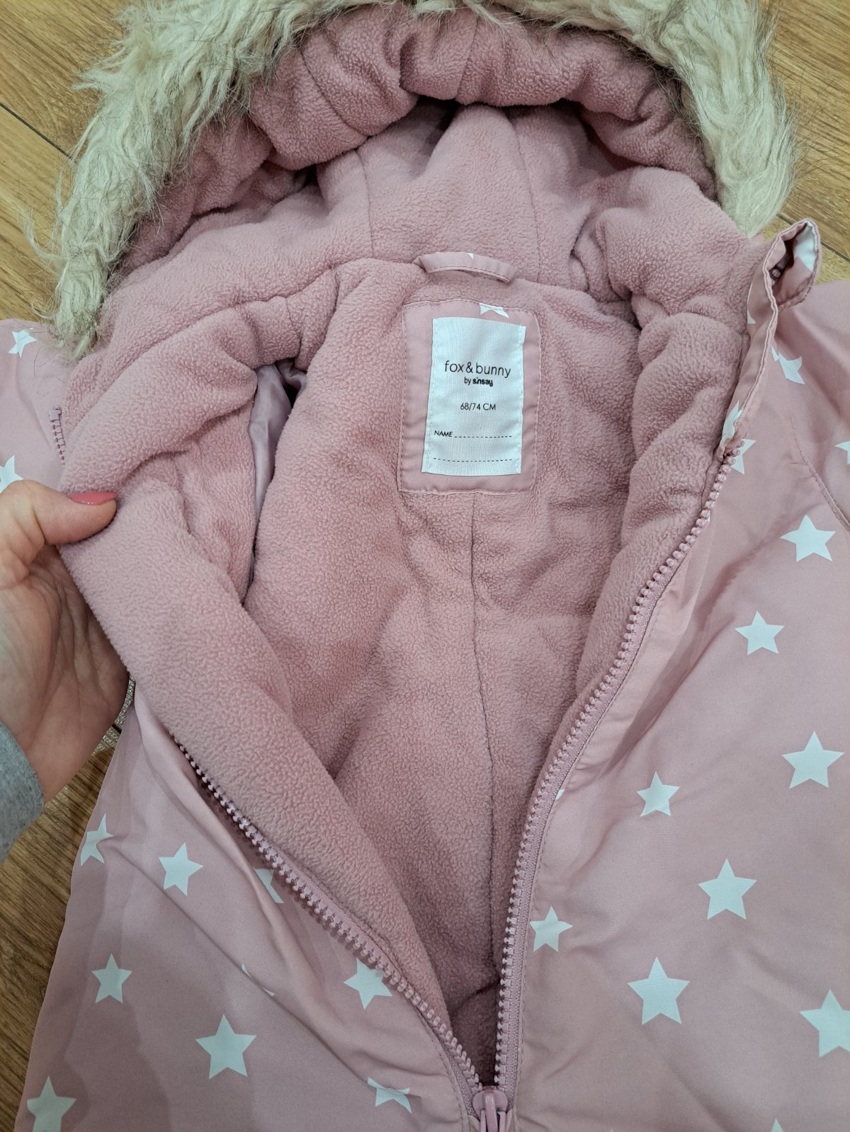 Detský overal veľkosť 68/74. Dĺžka od ramena 65 cm. Vnútri teplý.