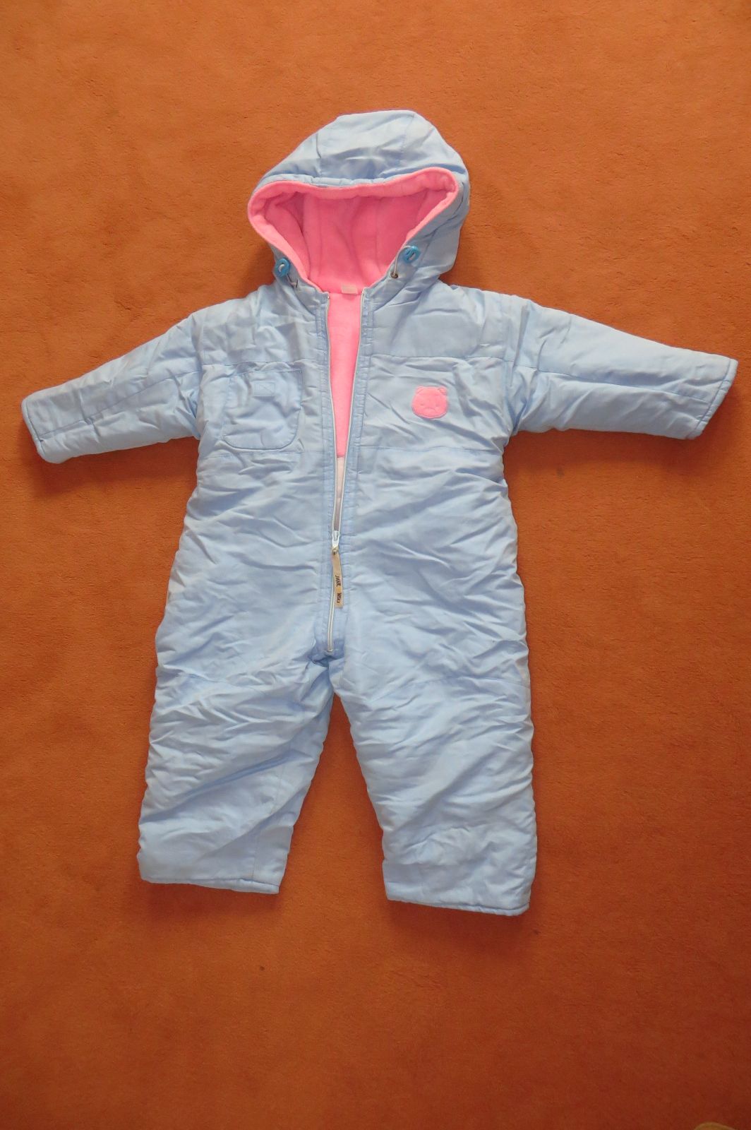 Predám nosený dievčenský overal, veľ. je 12-18 mesiacov, čo zodpovedá veľkosti č. 86. Zvnútra vyteplený ružovým flaušom. Celková dĺžka je 77 cm, až po spodok. Ten spodok sa dá ešte vyhrnúť, je to 9 cm, takže tá celková dĺžka je teda medzi 66 - 77 cm.