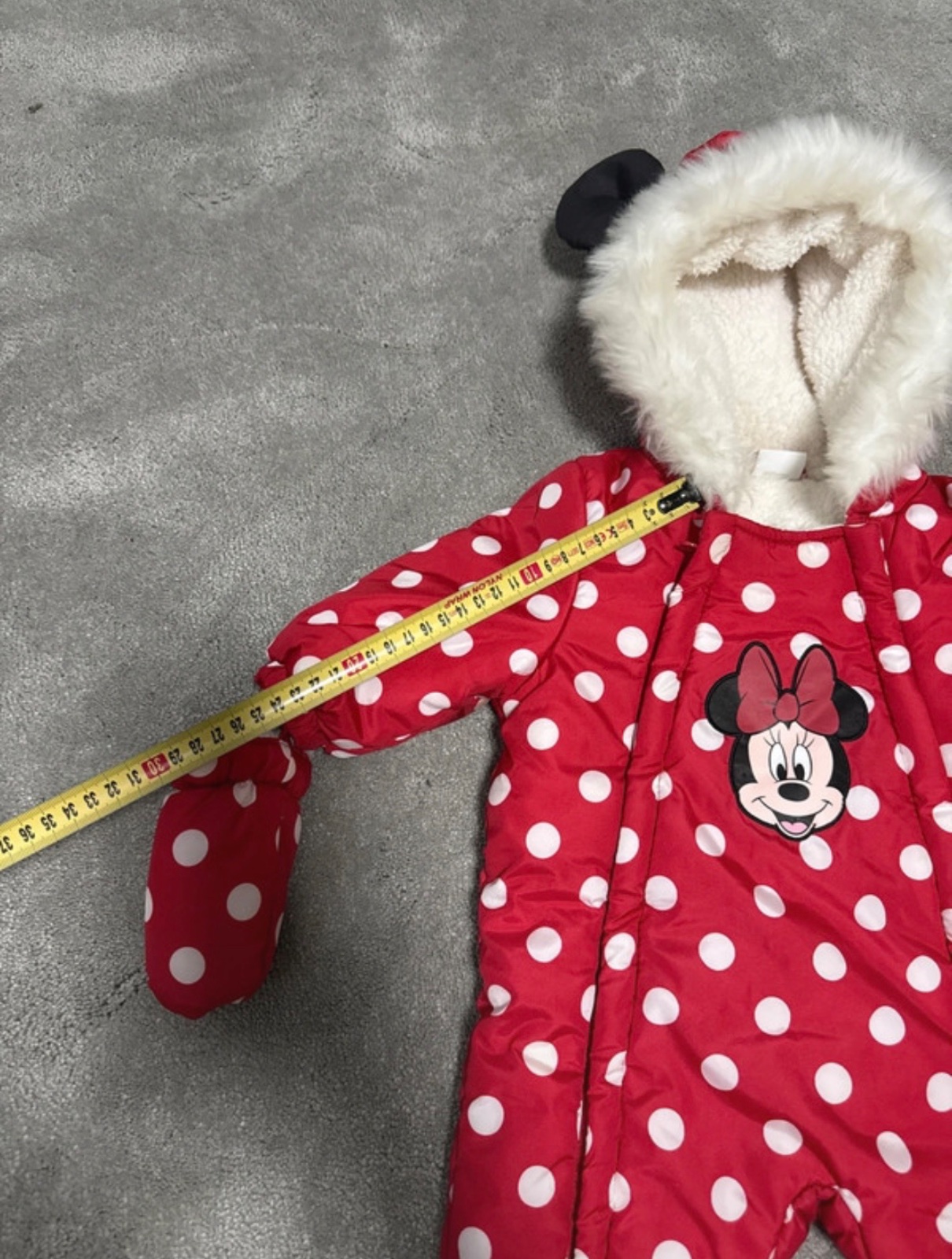 Overal ma odopinacie rukavice. Bez poškodení či flakov. Ako nový. Dĺžka rukáva od ramena je 19cm. Celková dĺžka overálu 52cm.