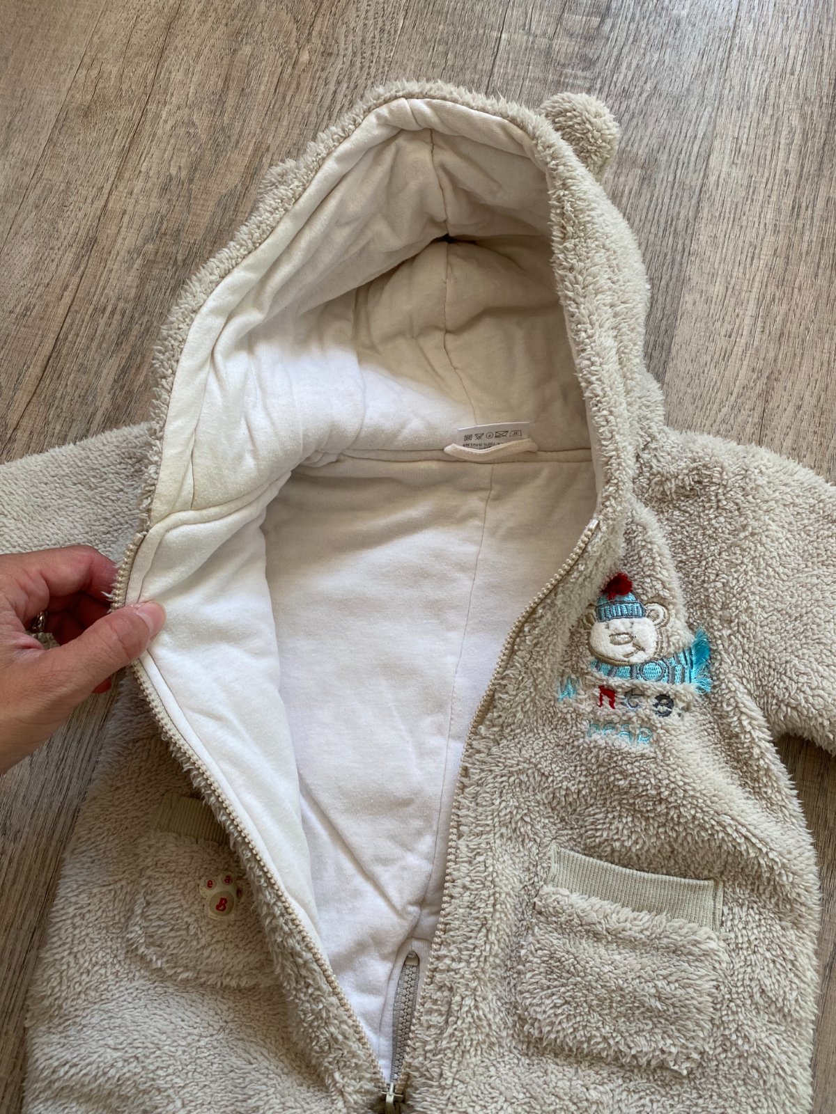 ✔️ vonkajšia strana mäkučký „chlpatý“ materiál, vnútro 100 % bavlna – pohodlné pre bábätko