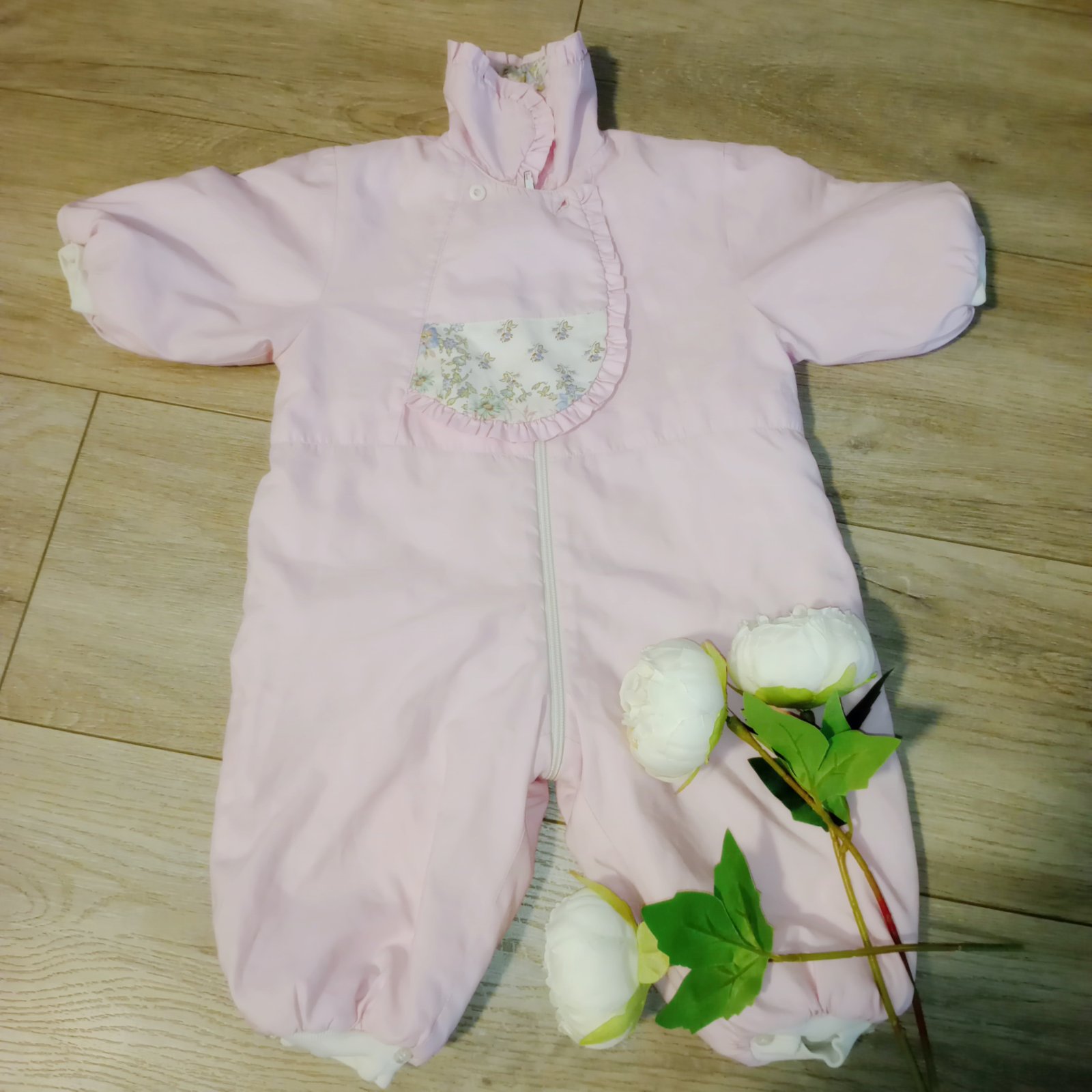 Zimný ružový overal s rukavicami 9 mes 74 cm