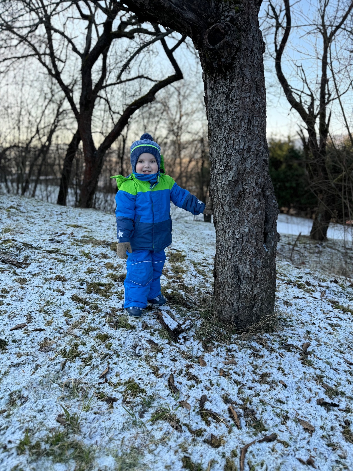 Predam velmi pekny a hlavne kvalitny detsky zimny set zlozeny z bundy a oteplovaciek zn. Tchibo. Suprava super zahreje, nakolko je s makkym a hrejivym vatovanim a naviac podsita mikroflisom s protizmolkovou upravou. Za mna su to najlepsie zimne sety pre deti, netreba sa pod ne velmi obliekat, staci len termopradlo a stale su deti v teple. Set je este zo starsich kolekcii, ktore neboli vyrabane z recyklovatelnych materialov ako tieto nove. Tie sa nam az tak neosvedcili. Farebne je set vhodny ako pre chlapca tak dievca, ziarive odtiene modrej a neonovo zelenej v zime velmi pekne ukazu. Set je velmi prakticky - nepremokavy (vodny stlpec do 5000 mm), vetruvzdorny, no zaroven priedusny. Ma tiez 2 prakticke vrecka na bunde a dalsie 2 na nohaviciach, zosilnene vsite diely na kolenach a v oblasti sedu, nohavice s elastickymi trakmi s nastavitelnou dlzkou, mnohopocetne reflexne prvky pre lepsiu viditelnost dietata a menovku na podpisanie na oboch castiach - nohaviciach i bunde, odopinatelnu kapucnu na cvocky, zakoncenie nohavice na gumicku s regulovanim podla potreby proti zachytavaniu snehu, bocne zipsy pre lepsie obuvanie a elasticke gumicky v spodnej casti nohavic. Suprava bola nosena jednu zimu, takze je v TOP stave bez akychkolvek poskodeni, takze urcite odporucam! Velkost uvedena na visacke je dvojcislo 98/104, teda je vhodny pre dieta vo veku 3-4 roky, no my sme nosili dlhsie - cca do 4,5 roka. Rozmery bundy: celkova dlzka - predny diel od zipsu meria 45 cm a zadny diel 53 cm, sirka pod pazuchami je 42 cm, vonkajsia dlzka rukava od ramena je 37 cm a vnutorna 27 cm. Rozmery nohavic: celkova bocna dlzka je 68 cm a vnutorna dlzka 40 cm, pas je na gumicku, no da sa i regulovat - v klude ma 27 cm a max. povoli na 34 cm. K suprave mam aj original krabicu od kupy. Predajna cena je 25,00 eur plus postovne podla vlastneho uvazenia, pricom povodna predajna cena bola cez 50 eur. Osobny odber je mozny aj na sidlisku Rozkvet v PB.