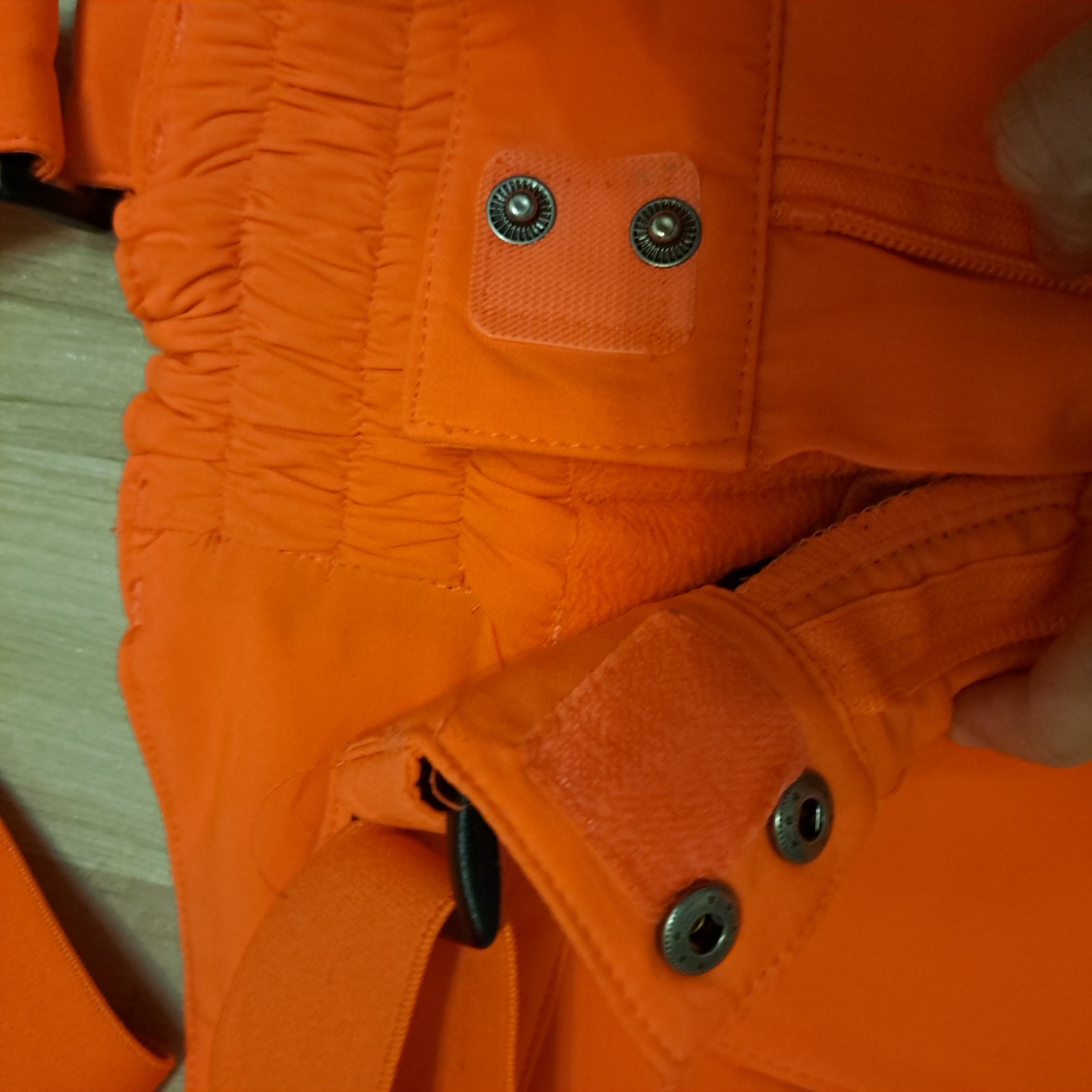 Nosené ale stále v super stave. Len trochu zošúchaný nápis a zozadu naspod zašité ale stál sú pekné. Farba je taká sýto oranžovoružová