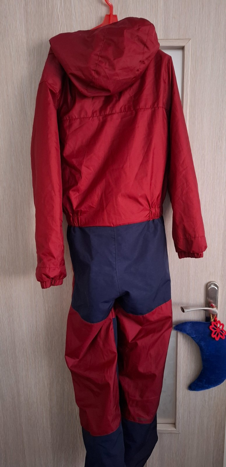 Kombinéza do snehu. Rozmery: dĺžka zhora po pas 41 cm, od pása dole 89 cm, od rozkroku dole 63, pas 39 cm, boky 48 cm, rukáv 49 cm, šírka pod pazuchami 49 cm. Kombinéza je bez poškodení, iba ošúch...