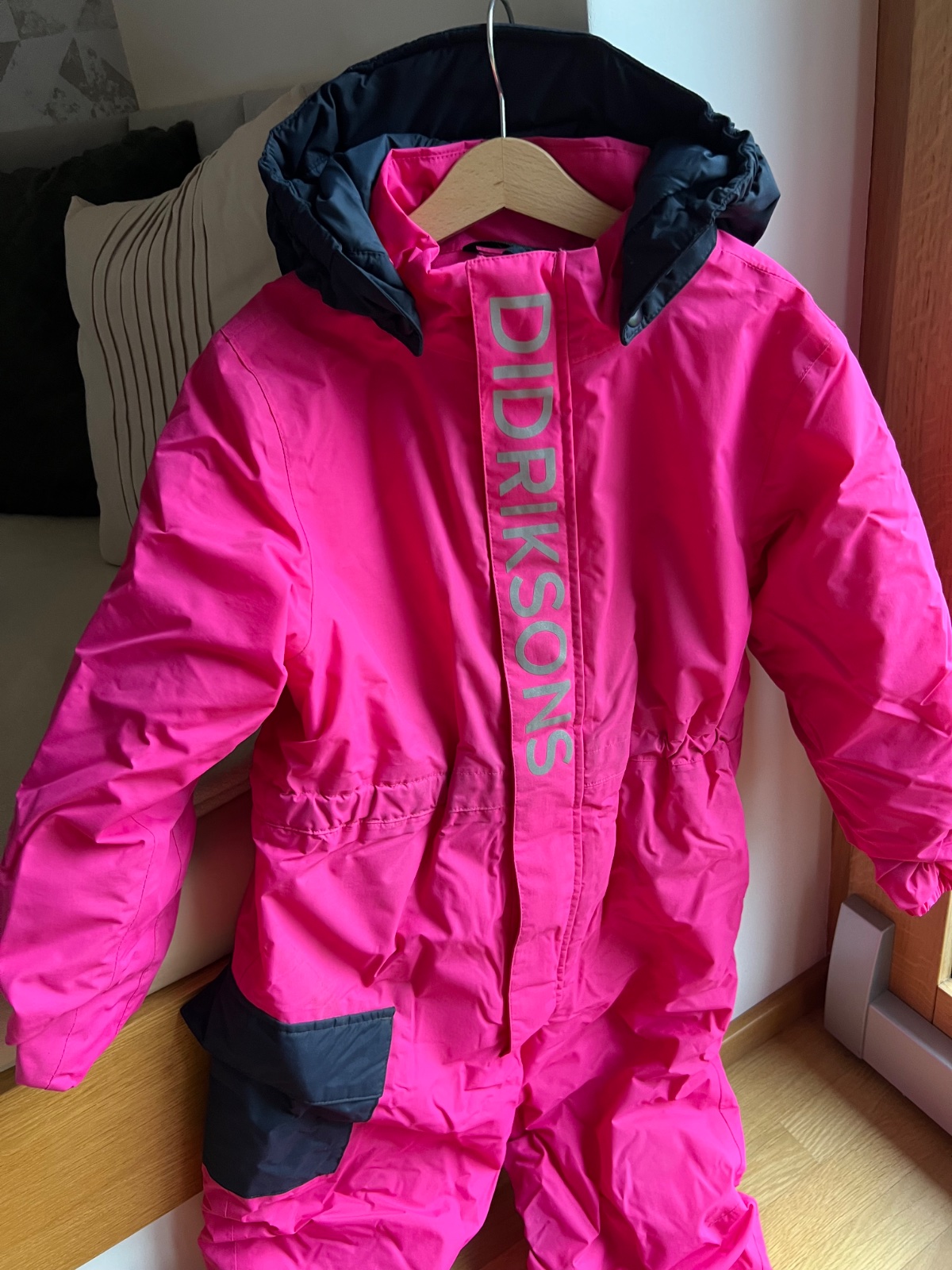 Predám veľmi kvalitnú zimnú kombinézu švédskej značky Didriksons - veľkosť 130 cm. Je teplučká, 100 % nepremokavá, v páse nastaviteľná pomocou gumičiek na vnútornej strane, má reflexné prvky na viacerých miestach. Kúpená na lyžovačku, super splnila účel aj z pohľadu bezpečnosti, keďže dcérku vďaka žiarivej cyklámenovej farbe bolo výborne zďaleka už vidieť. Kombinézka je vo výbornom stave, ponúkam za cenu 79 eur už vrátane doporučeného poštovného. V prípade záujmu sú dostupné aj kvalitné rukavičky v rovnakej farbe :-) a pri ich kúpe spolu s kombinézkou to ponúkam ako balíček spolu za 90 eur.