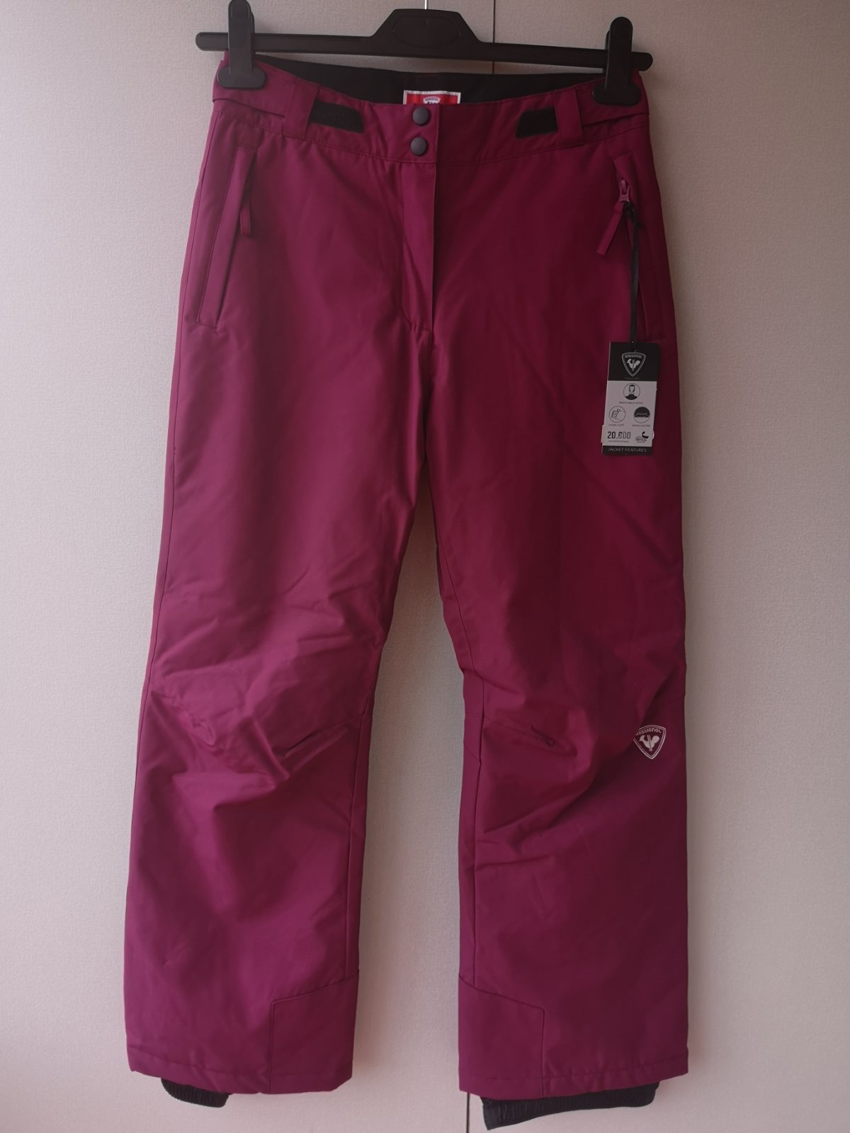 Nohavice sú spevnené v dolnej časti a na ľavej nohavici je logo Rossignol.