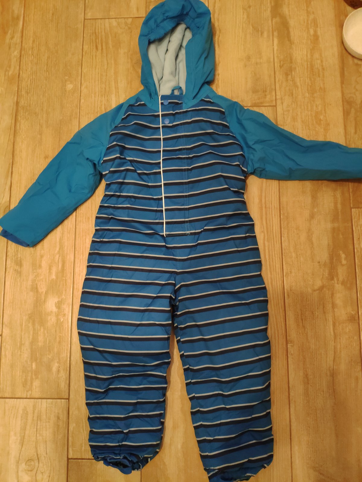 Krásny overal 98/104, super stav, reflexné prvky. Gumičky na chodidlá. Celková dĺžka 81 cm.