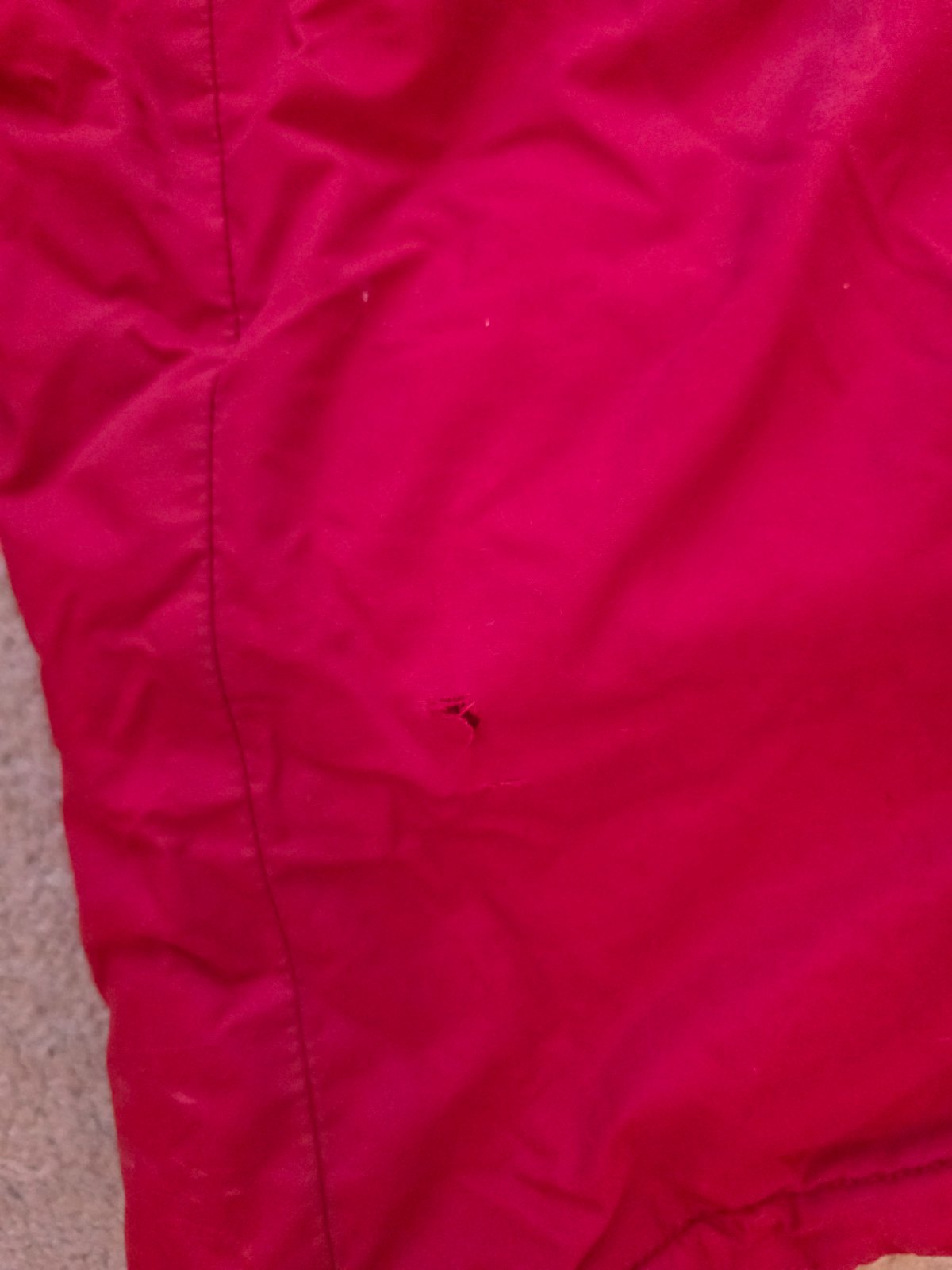 Na jednej nohavici je malá diera – viď foto, na funkčnosť nemá vplyv (možno zašiť alebo zalepiť bez problémov) .