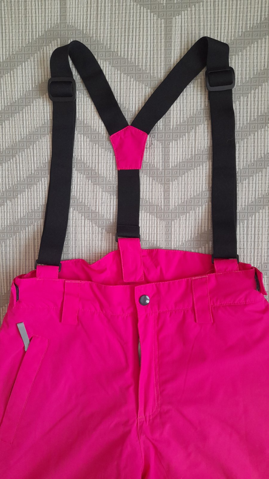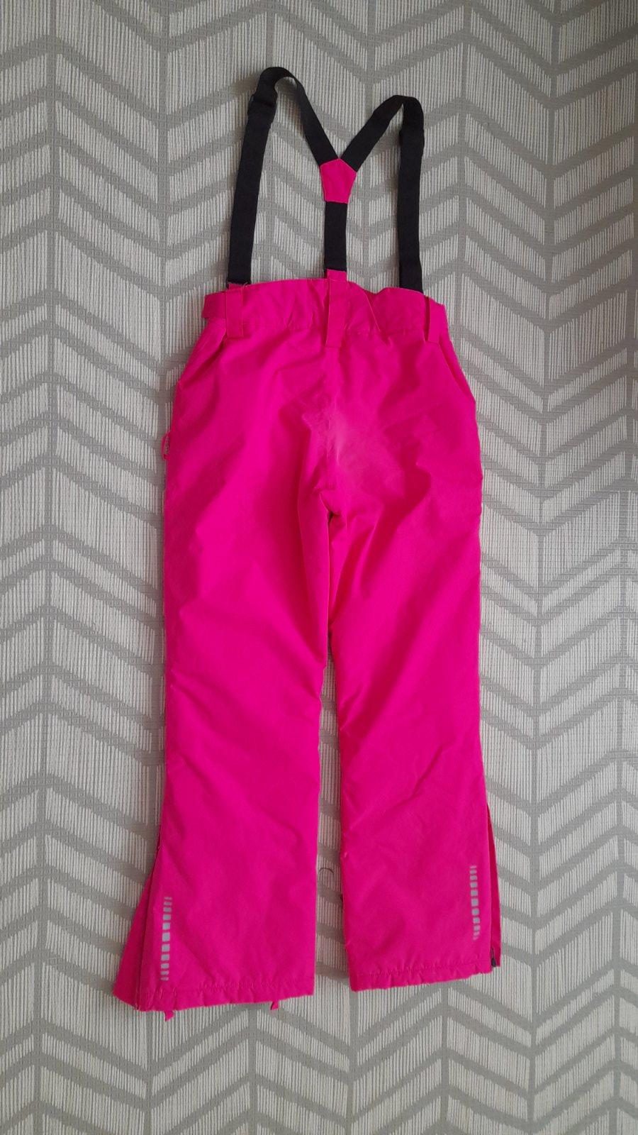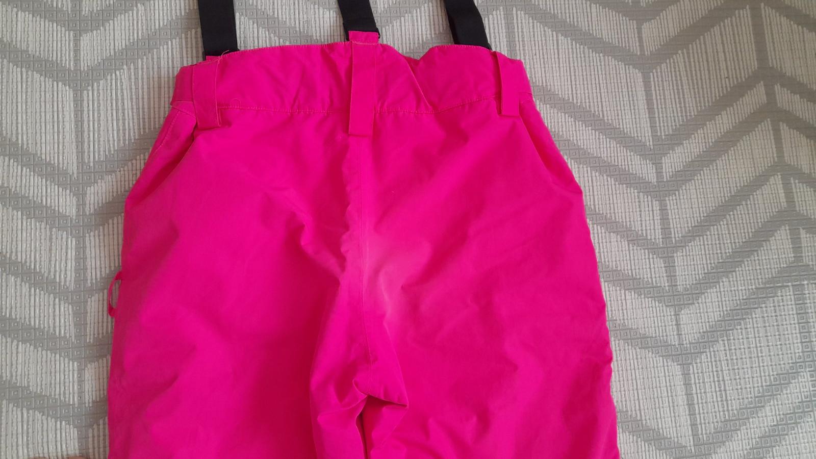 Odopínateľné traky, regulovateľný pás, vzadu mierne zvýšený. Zapínanie na zips a cvok. Vpredu na pravej strane vrecko na zips. Dole na nohaviciach rozšírenie na zips a vnútri protisnehová manžeta na gumičku. Reflexné prvky.