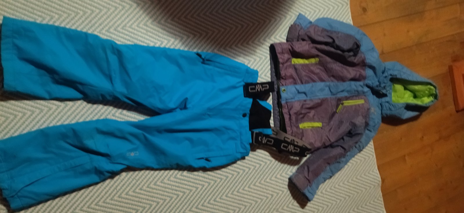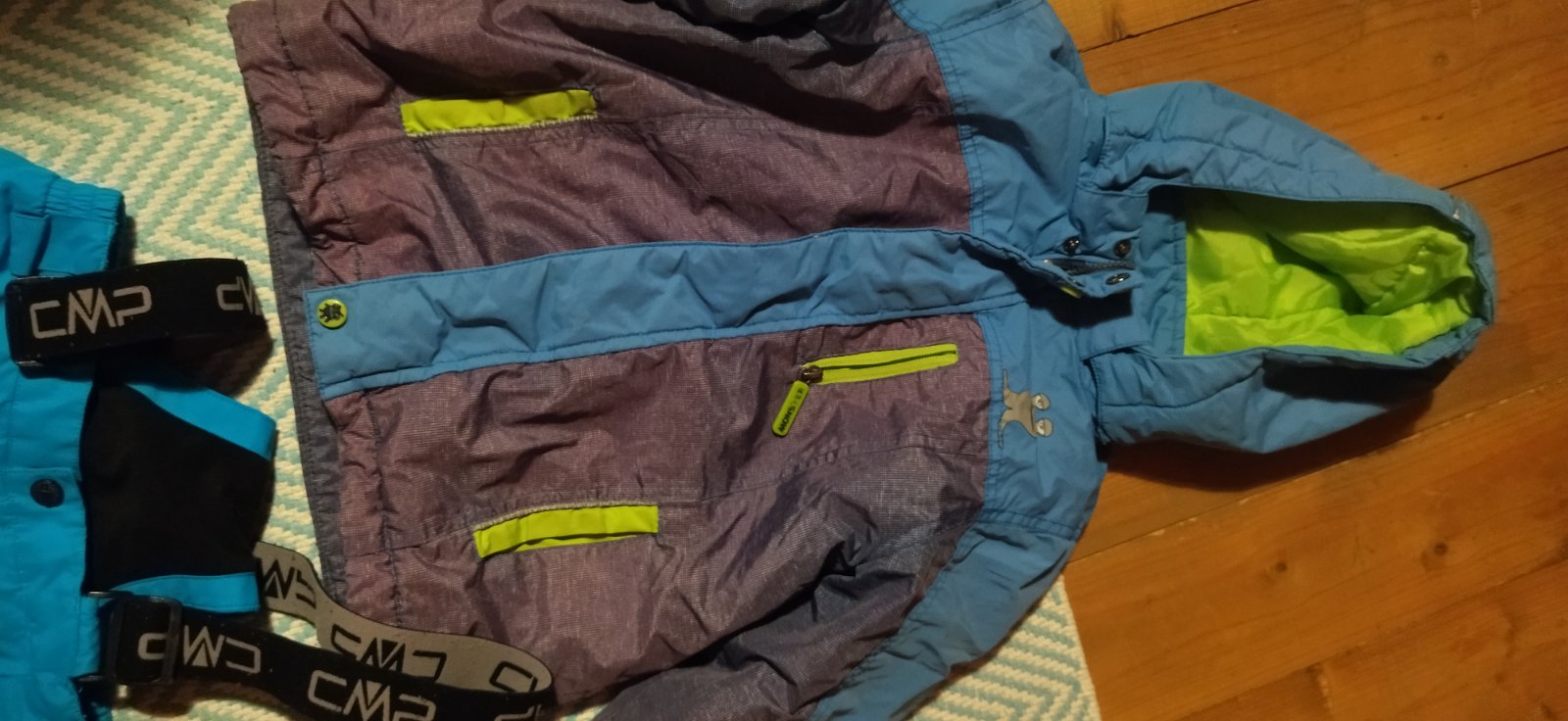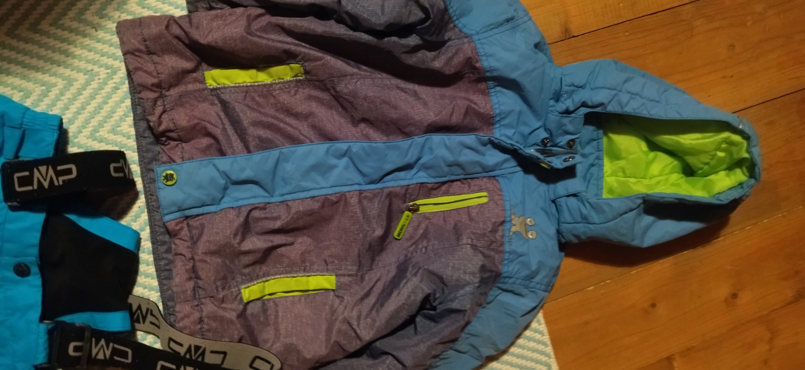 Otepľovaky plus bunda noseny stav dobrý veľkostne 5/6 rokov cena spolu 6 e spolu so snehulami svietiacimi 10 e