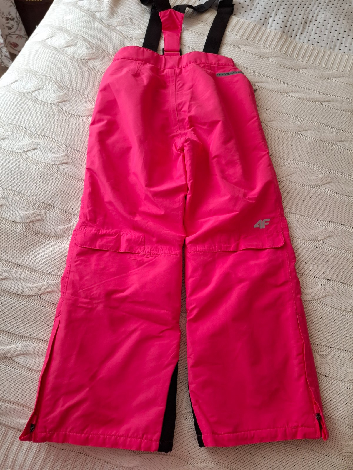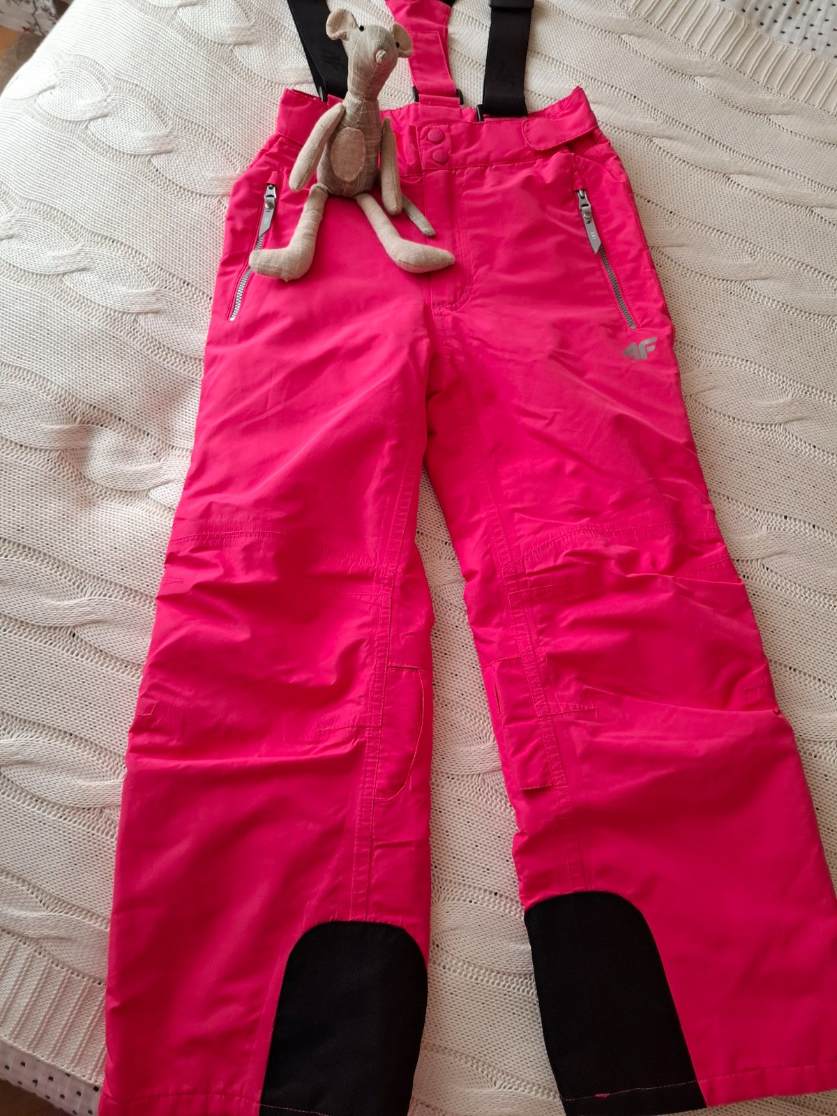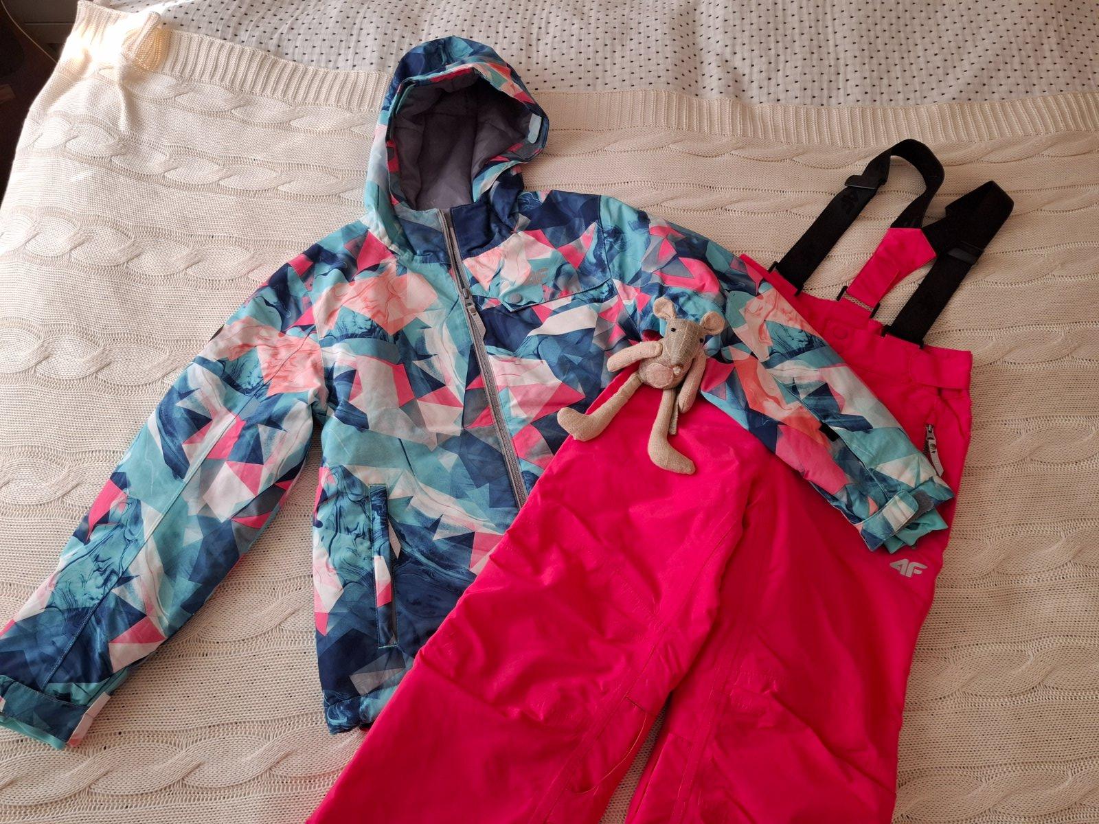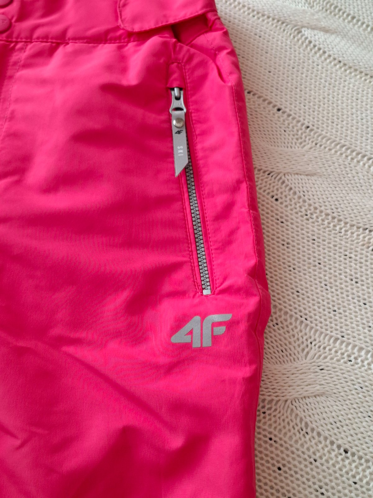 Lyžiarska súprava značky 4F, kvalitný prepracovaný kúsok, má množstvo vychytávok. Nohavice sú ružové, nedá sa mi to dobre odfotit. Rukávy na bunde a nohavice sa dajú predlžovať vďaka vnútornému systému, dcérka ju nosila dve sezóny. Poškodenia nemá, z časových dôvodov nemeriam. PC oveľa vyššia