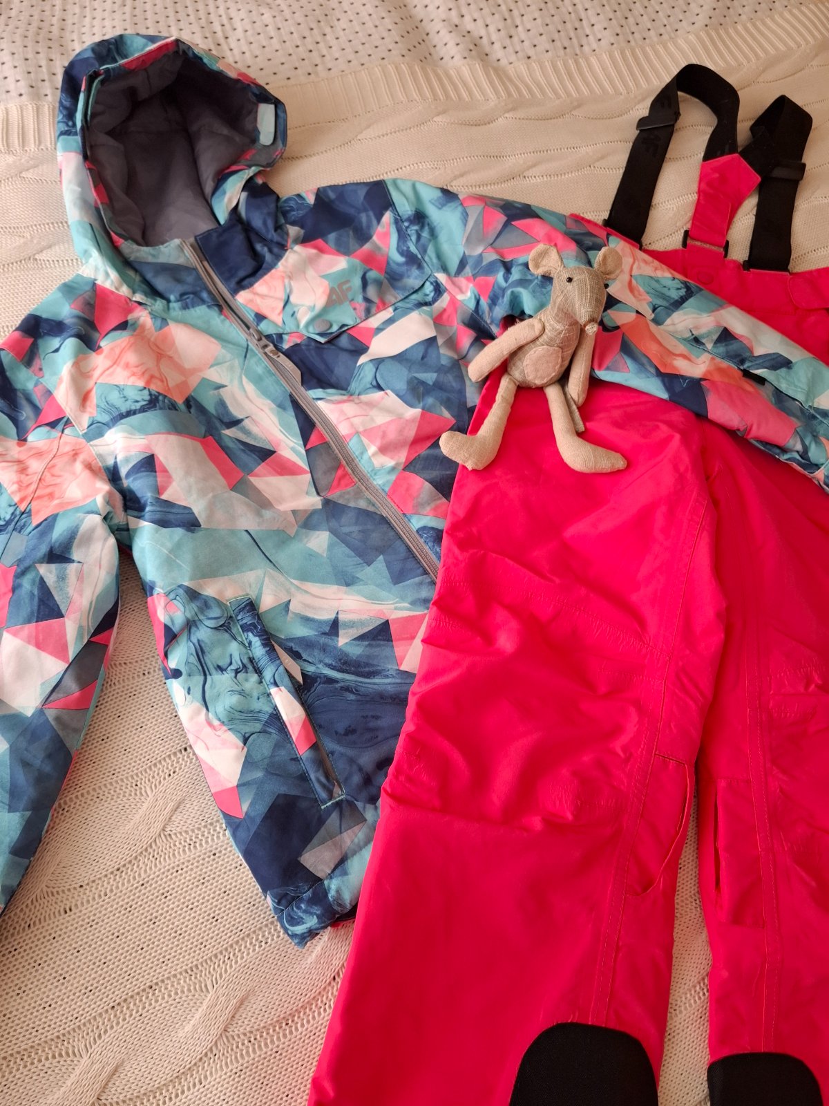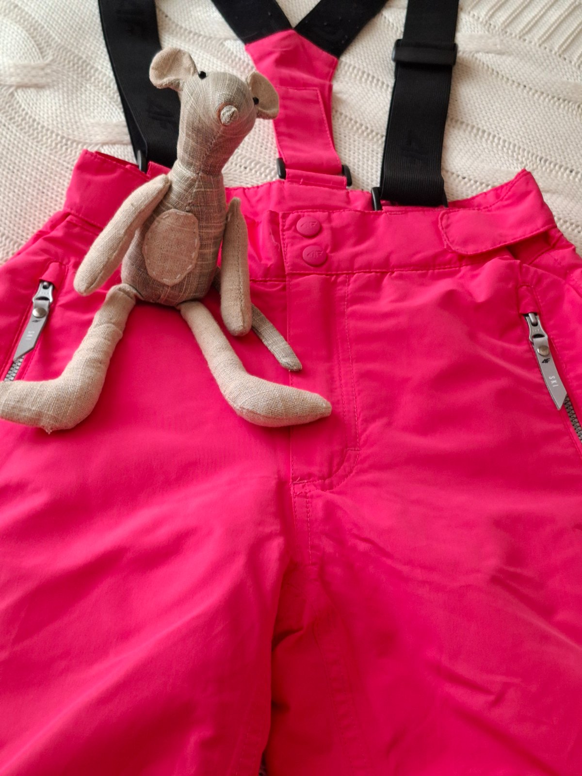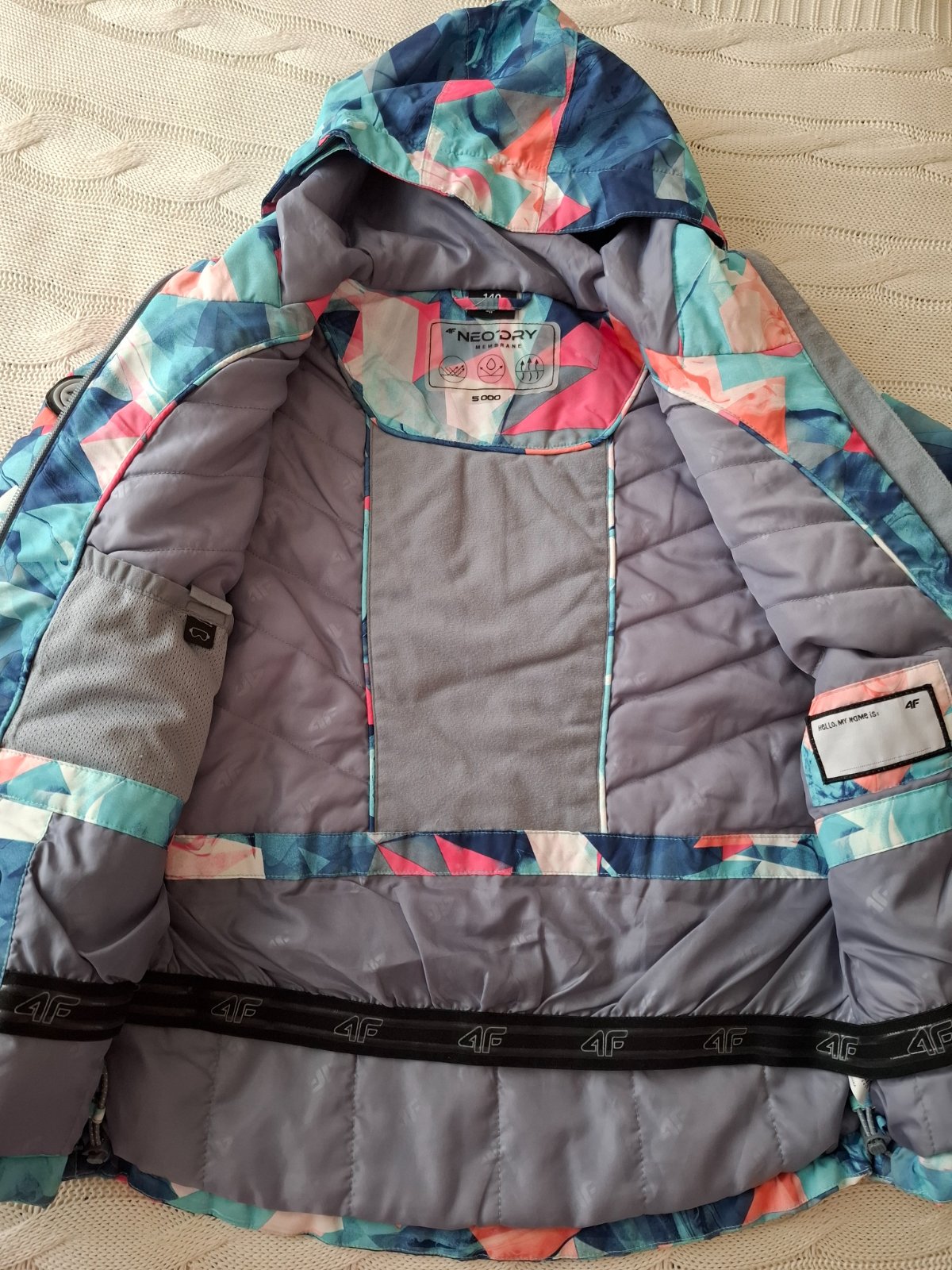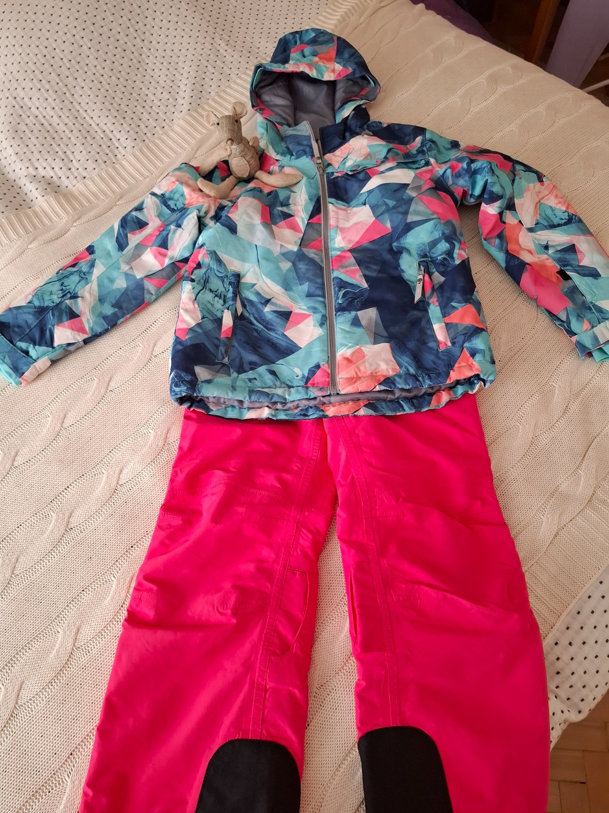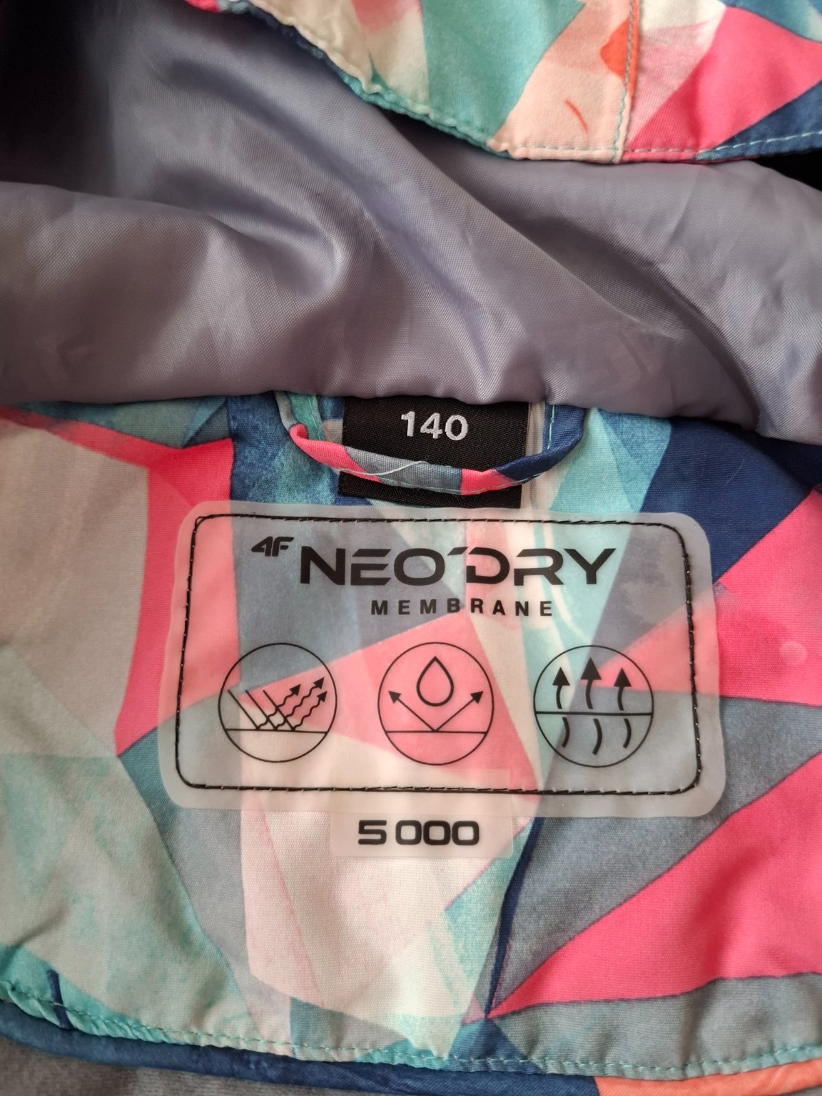 Lyžiarska súprava značky 4F, kvalitný prepracovaný kúsok, má množstvo vychytávok. Nohavice sú ružové, nedá sa mi to dobre odfotit. Rukávy na bunde a nohavice sa dajú predlžovať vďaka vnútornému systému, dcérka ju nosila dve sezóny. Poškodenia nemá, z časových dôvodov nemeriam. PC oveľa vyššia