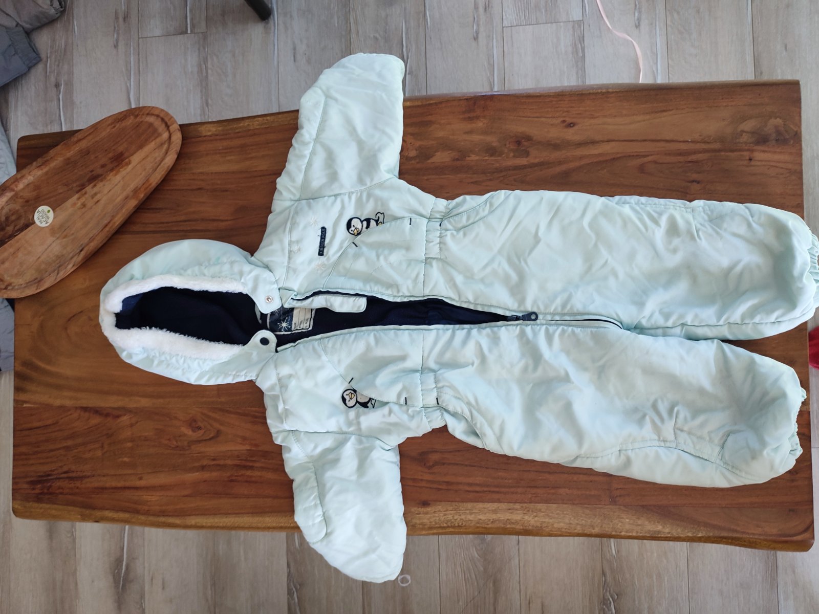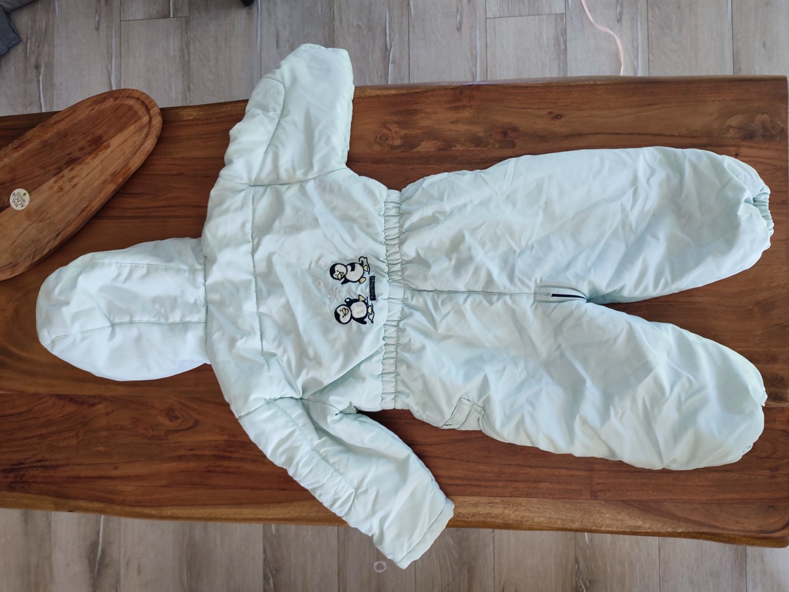 Milí teplý overal do zimy a snehu.Pekny strih,milé obrázky tučniakov, s kapucňou.